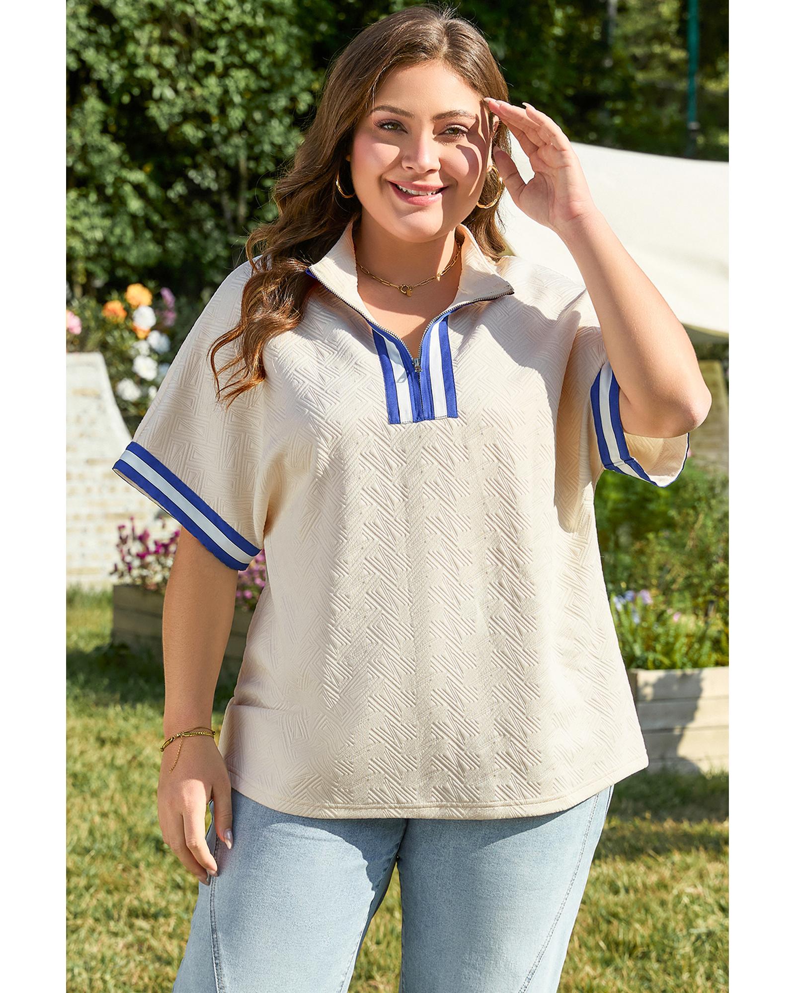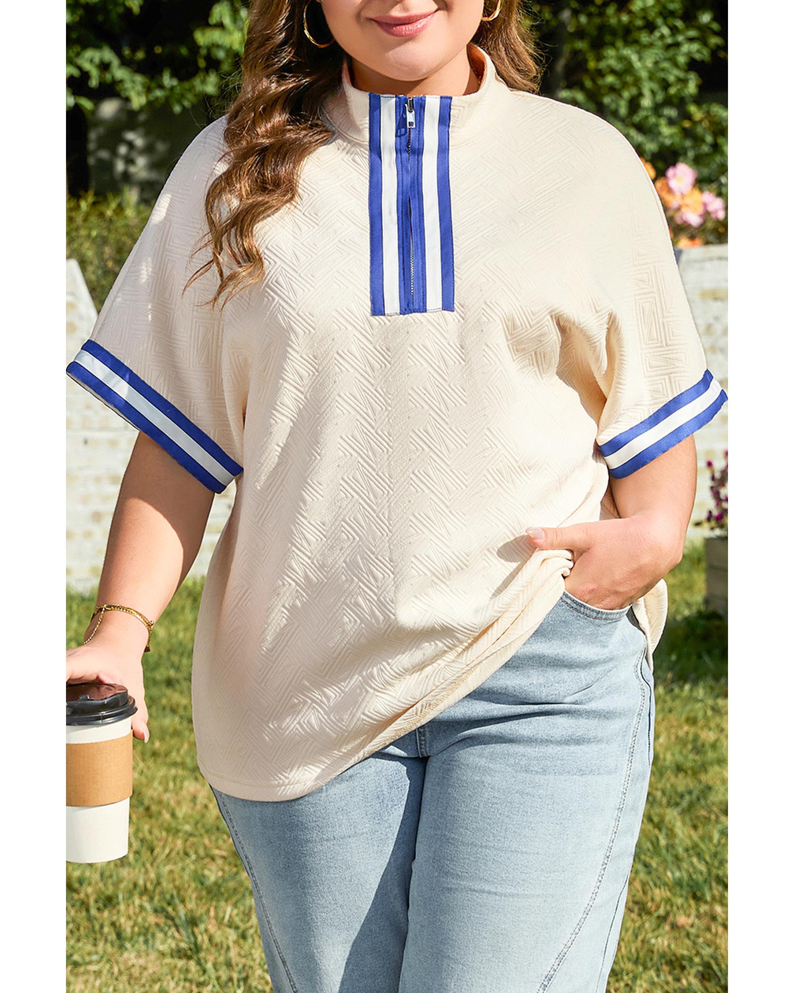 White Varsity Half Zip Textured Plus Size Top – 4X