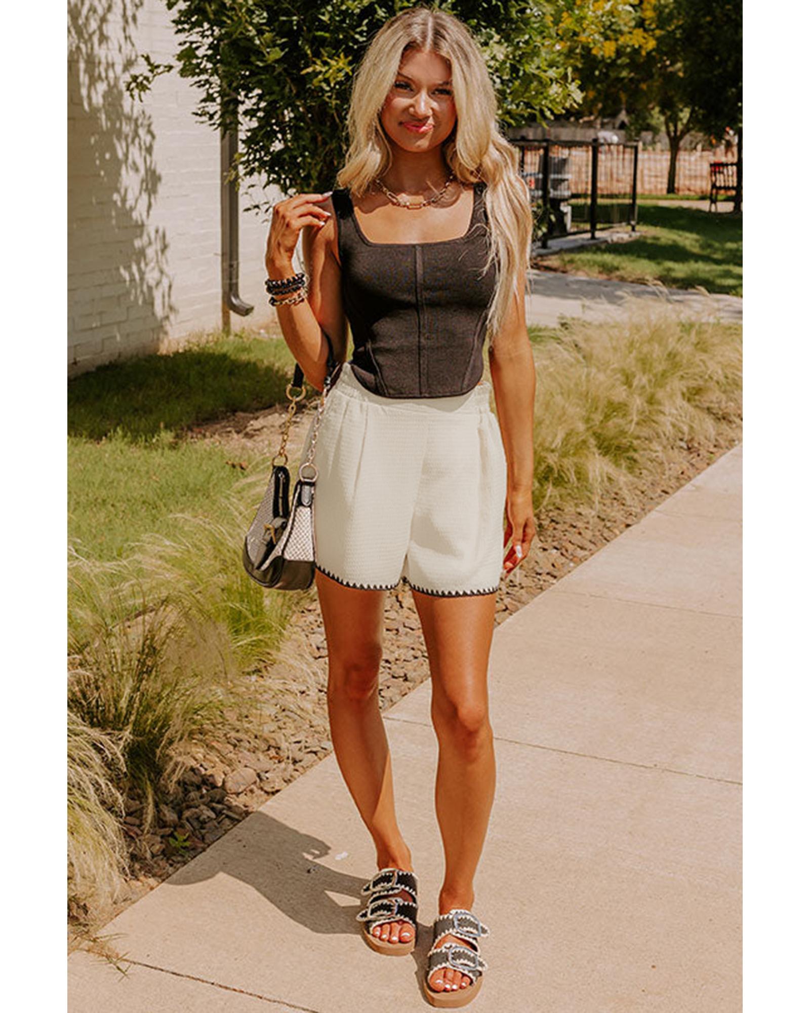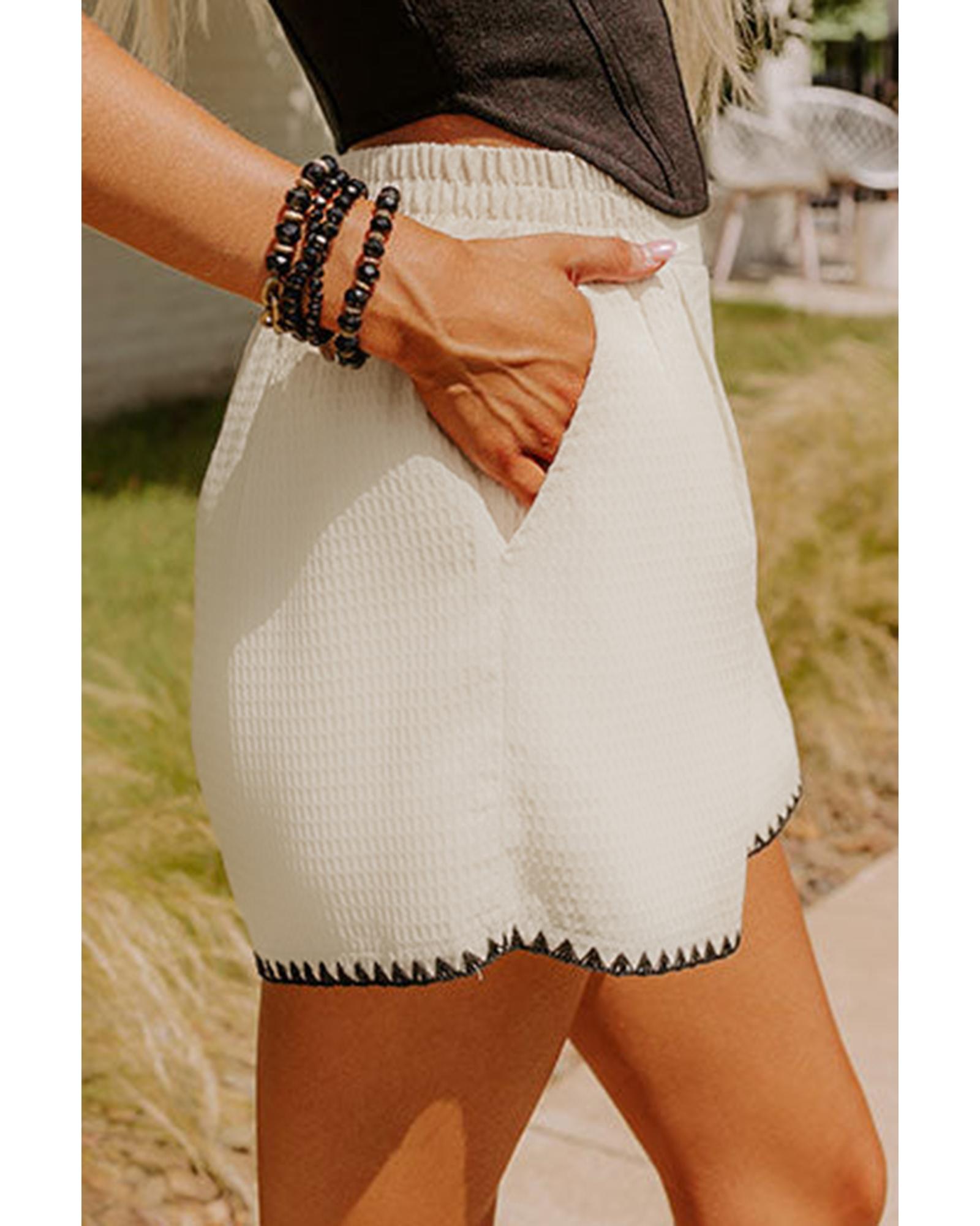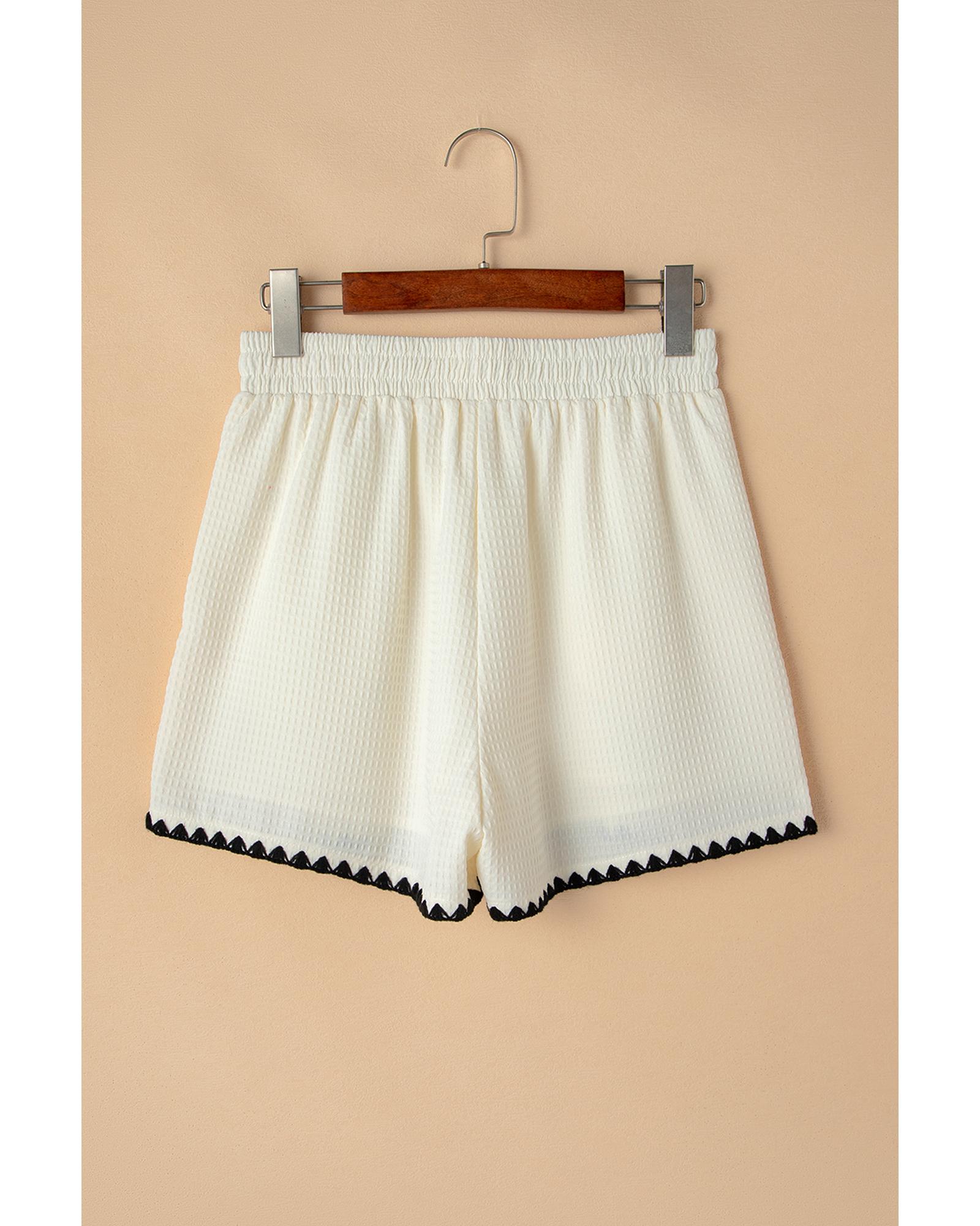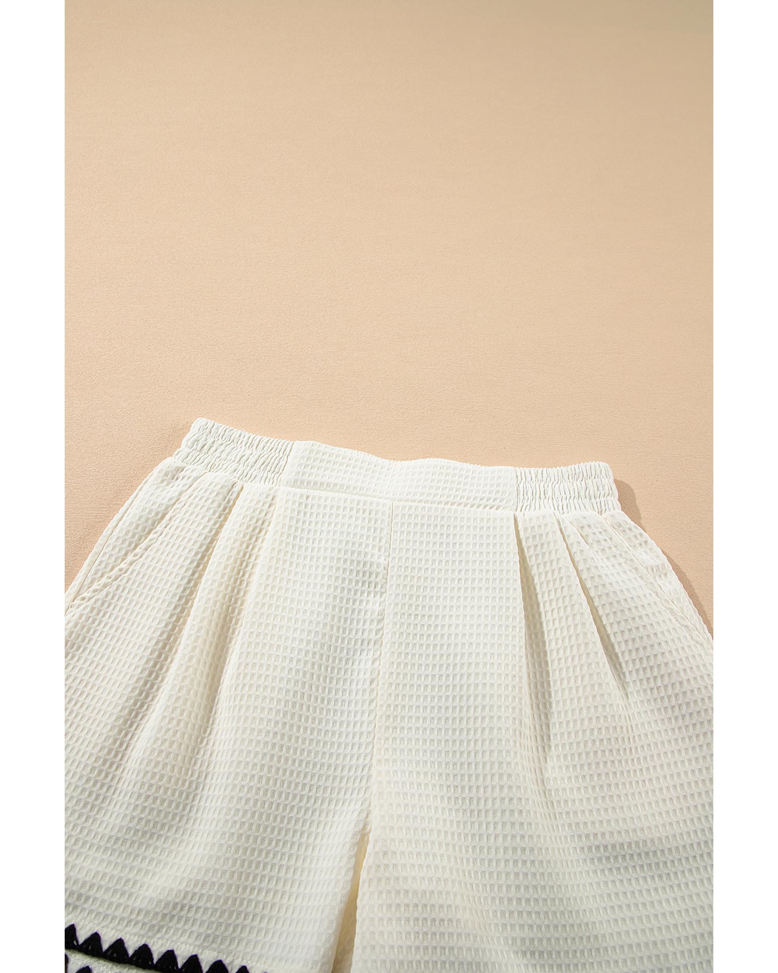 White Waffle Texture Contrast Ricrac Hemline Casual Shorts – L