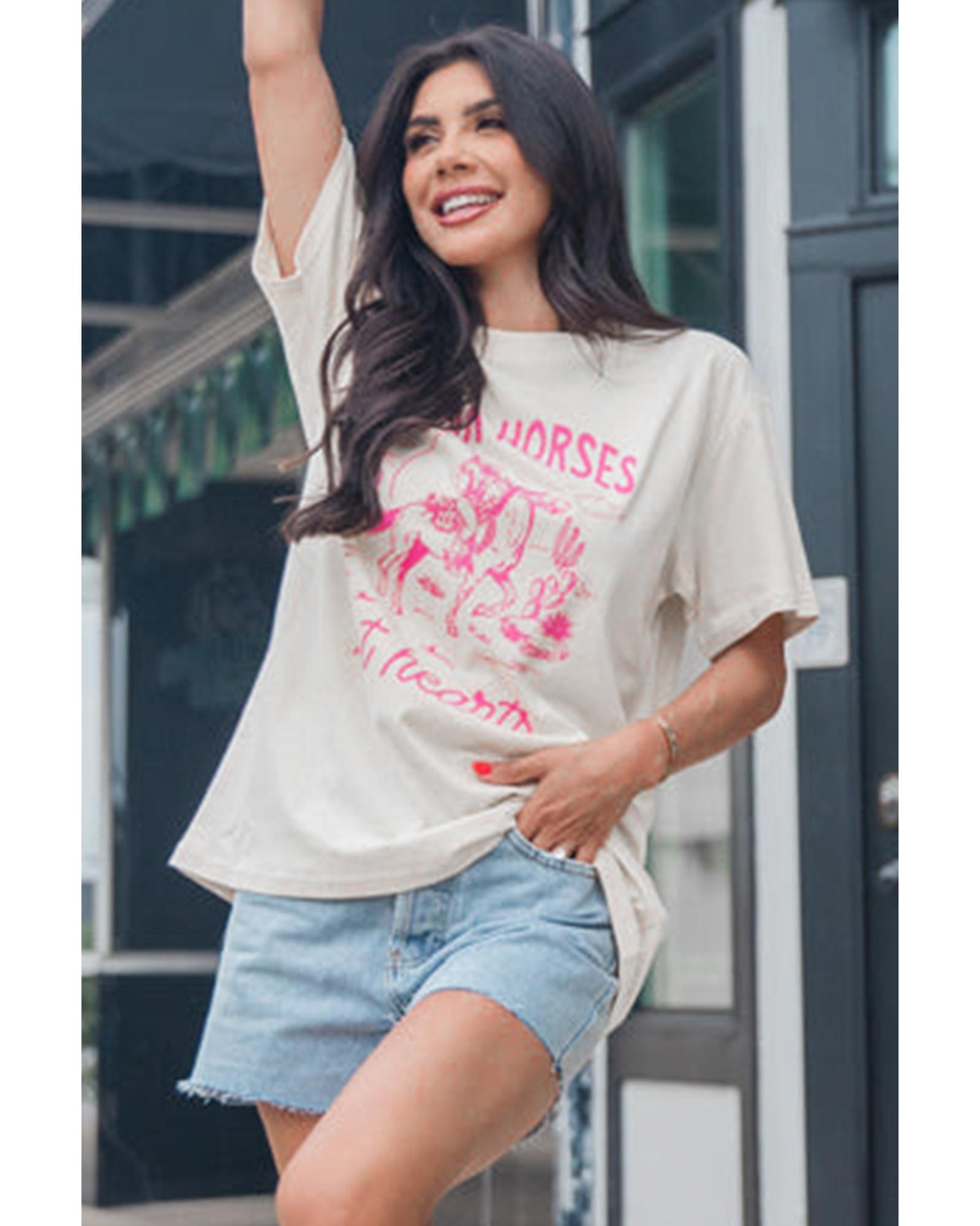 White Western BREAK HORSES Cowboy Graphic Crewneck T Shirt – M
