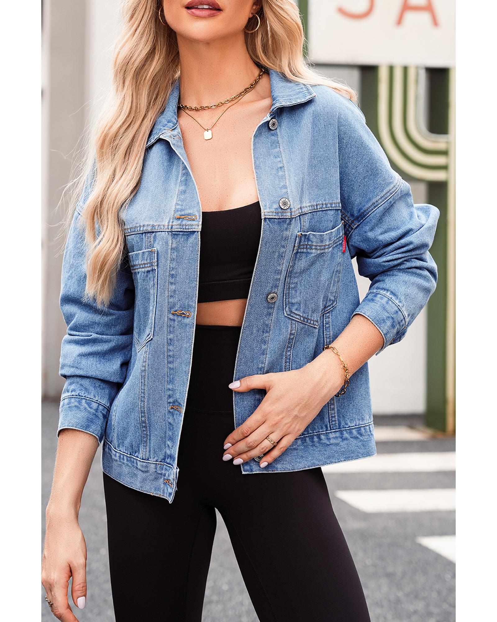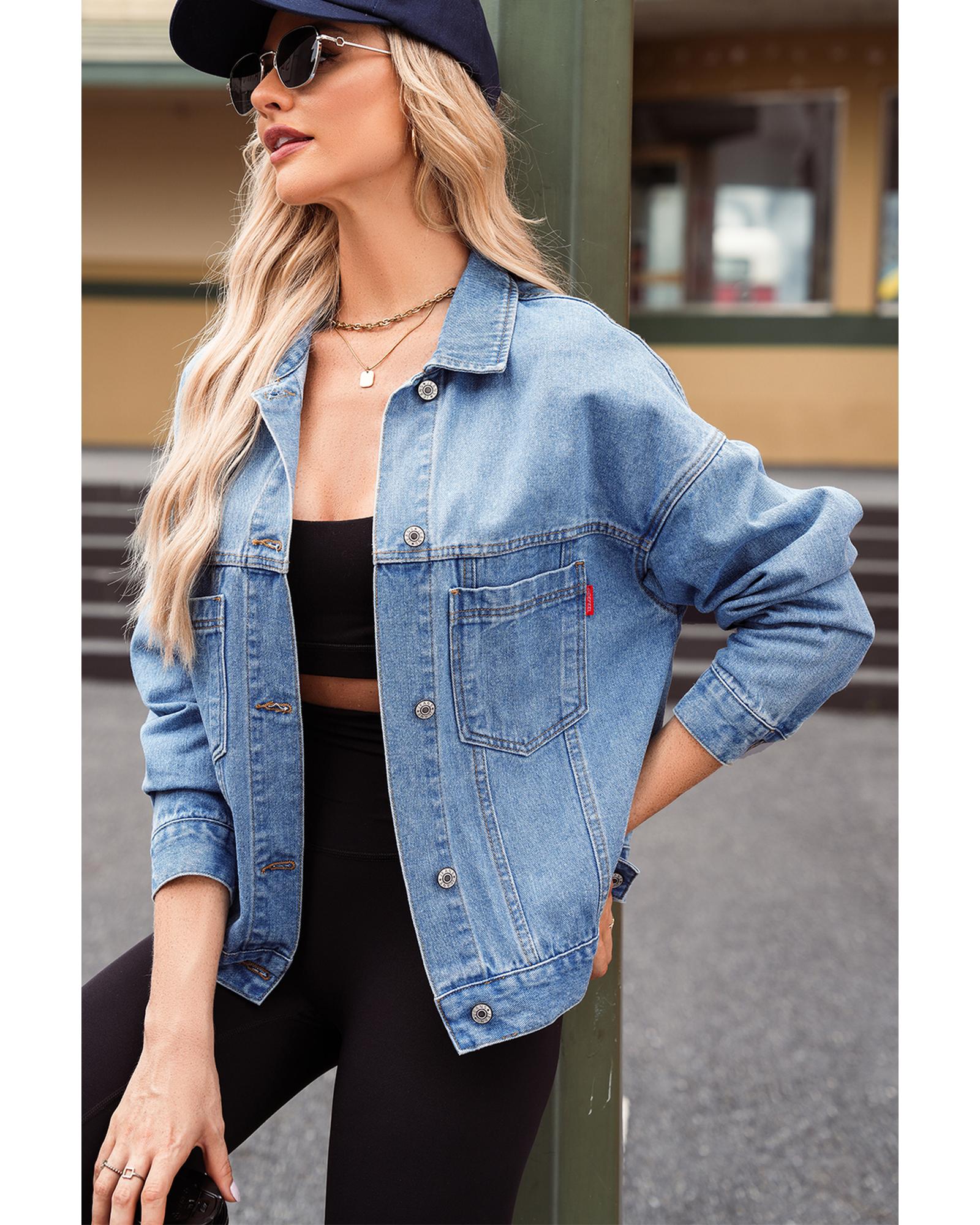 This washed oversize denim jacket features a vintage-inspired design with practical details and a versatile style. It offers a trendy, relaxed fit suitable for various casual occasions, combining classic elements with modern fashion sensibilities.