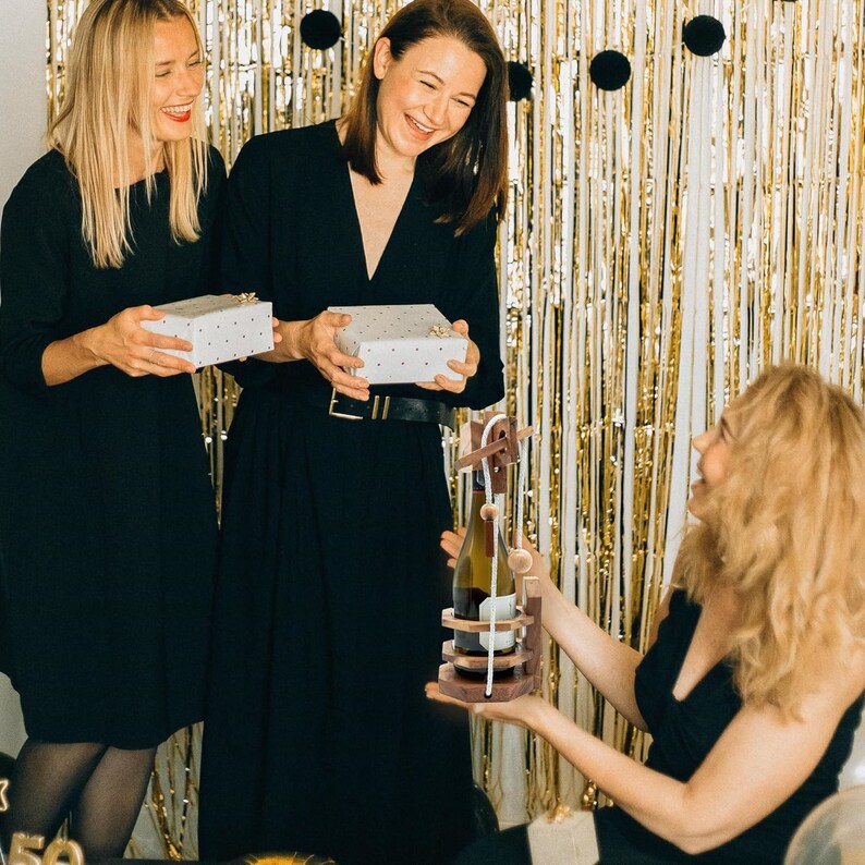 - Engaging wooden puzzle that challenges the user to unlock the bottle