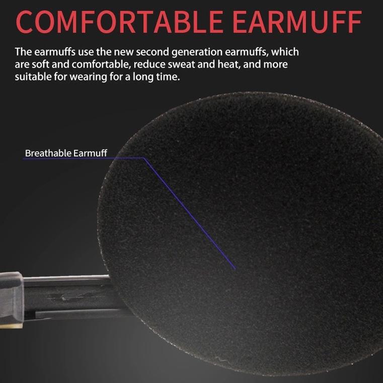 • Soft, comfortable earmuffs with good air permeability to reduce sweat and heat buildup