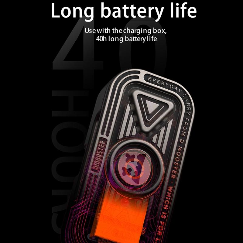 This wireless Bluetooth earphone features a durable metal body with a unique cool lighting effect. It offers 360-degree gyro rotation for entertainment and is designed to be sweat and dust-proof, ensuring improved longevity and reliable performance during use.