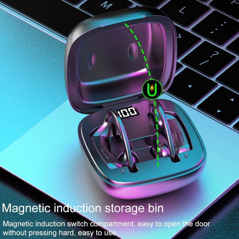 These wireless Bluetooth earphones feature a magnetic charging case with a digital display, providing a convenient and immersive audio experience. They are designed for comfortable long-term wear with a semi-in-ear and ear-hanging design, ensuring a secure fit during use. The earphones support fast and stable Bluetooth 5.0 connection, offering high-speed transmission for smooth gaming and audio playback. The LED digital display allows easy monitoring of battery levels, and the magnetic induction switch charging case simplifies charging and storage. Key operation buttons enable quick responses and prevent accidental touches, making these earphones suitable for various activities.