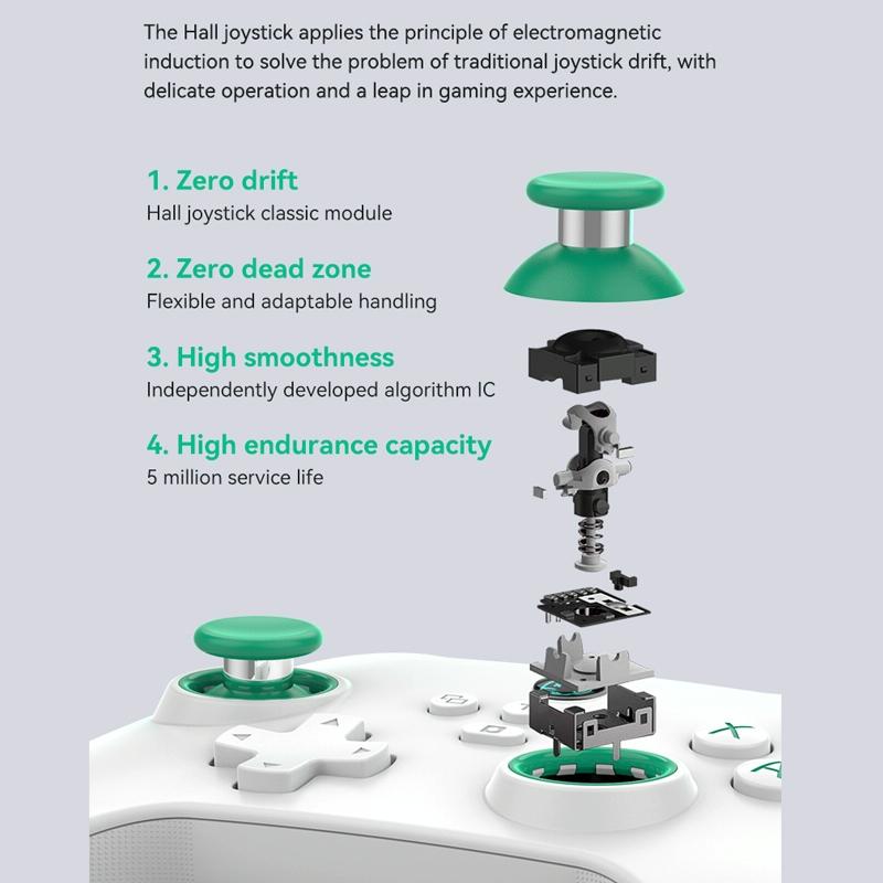 This wireless Bluetooth game controller is compatible with multiple platforms including Switch, iOS, Android, PC, PS3, and PS4. It features a variety of advanced gaming functions such as dual trigger buttons with micro trigger and Hall trigger switch, macro programming back button, six-axis gyroscope, and HD dual vibration motors with adjustable settings. The controller supports auto burst mode, handle mapping, and three-speed adaptation modes suitable for racing, normal, and FPS games. Its stretchable structure allows for easy loading and unloading, and it includes an optional mobile phone holder that fits devices from 53mm to 96mm. The long-lasting battery provides extended gaming sessions via Bluetooth connection.