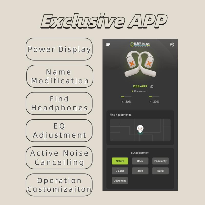 These wireless earphones feature an innovative aerodynamic fluid design and advanced digital noise reduction technology, providing high-quality sound and clear voice communication. They are designed for safe and comfortable use with air conduction technology and include dual microphones with intelligent call reduction features.