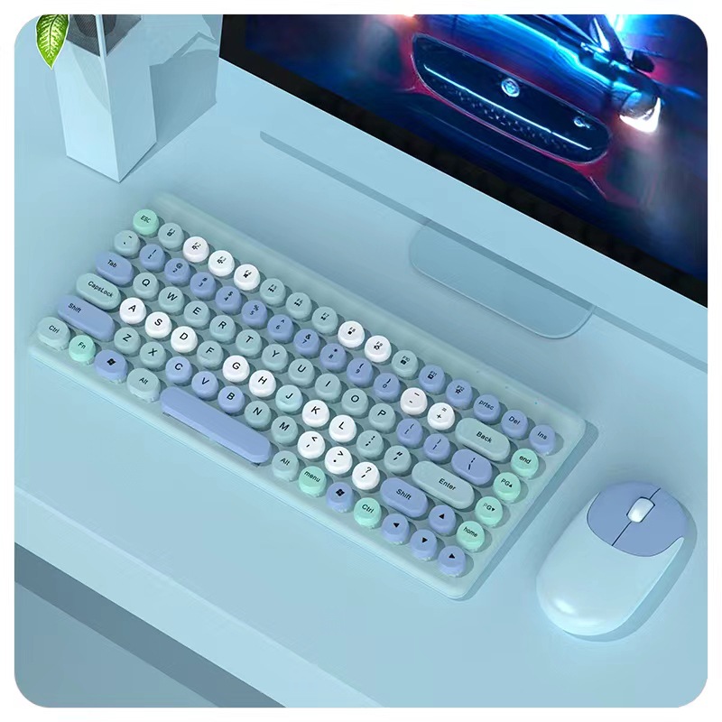 Wireless Keyboard & Mouse Combo - Retro Round Keycaps, 2.4GHz Ergonomic Design(blue)