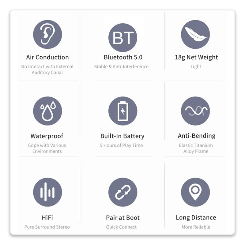 - 1 x Air Conduction Sports Bluetooth 5.0 Wireless Headset
