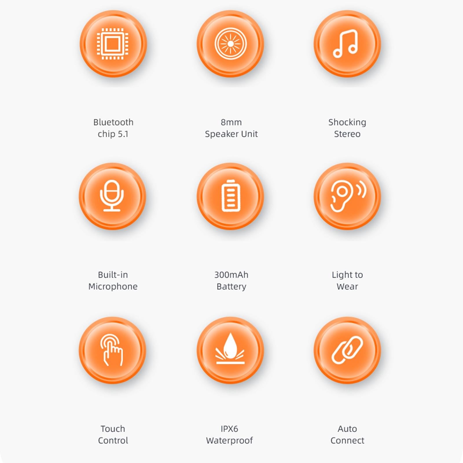 These wireless sports earbuds feature a lightweight design with Bluetooth V5.3 technology, providing a reliable and energy-efficient connection. They are equipped with a compact charging case and offer long-lasting battery life, making them suitable for active use and outdoor activities.