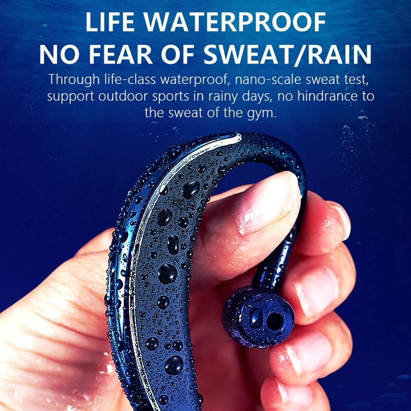 These wireless stereo sports earphones feature a sleek business style design with a comfortable ergonomic fit. They are equipped with life-level waterproofing, making them suitable for various outdoor activities. The earphones support voice broadcast of mobile phone address book, intelligent noise isolation for clearer call quality, and an adjustable 180-degree fit for both ears. They also offer intuitive power checking via mobile devices and three-dimensional operation buttons for easy control during use.