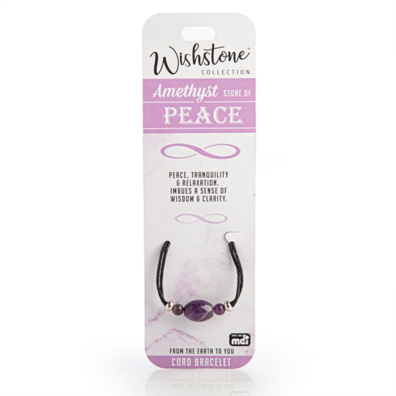 This elegant bracelet features a high-quality leather cord adorned with a purple amethyst stone and beads. It is designed to promote a sense of peace, tranquility, and relaxation, making it a meaningful accessory for everyday wear. The bracelet is part of a modern collection that reimagines a popular jewelry range with a sleek and contemporary style.