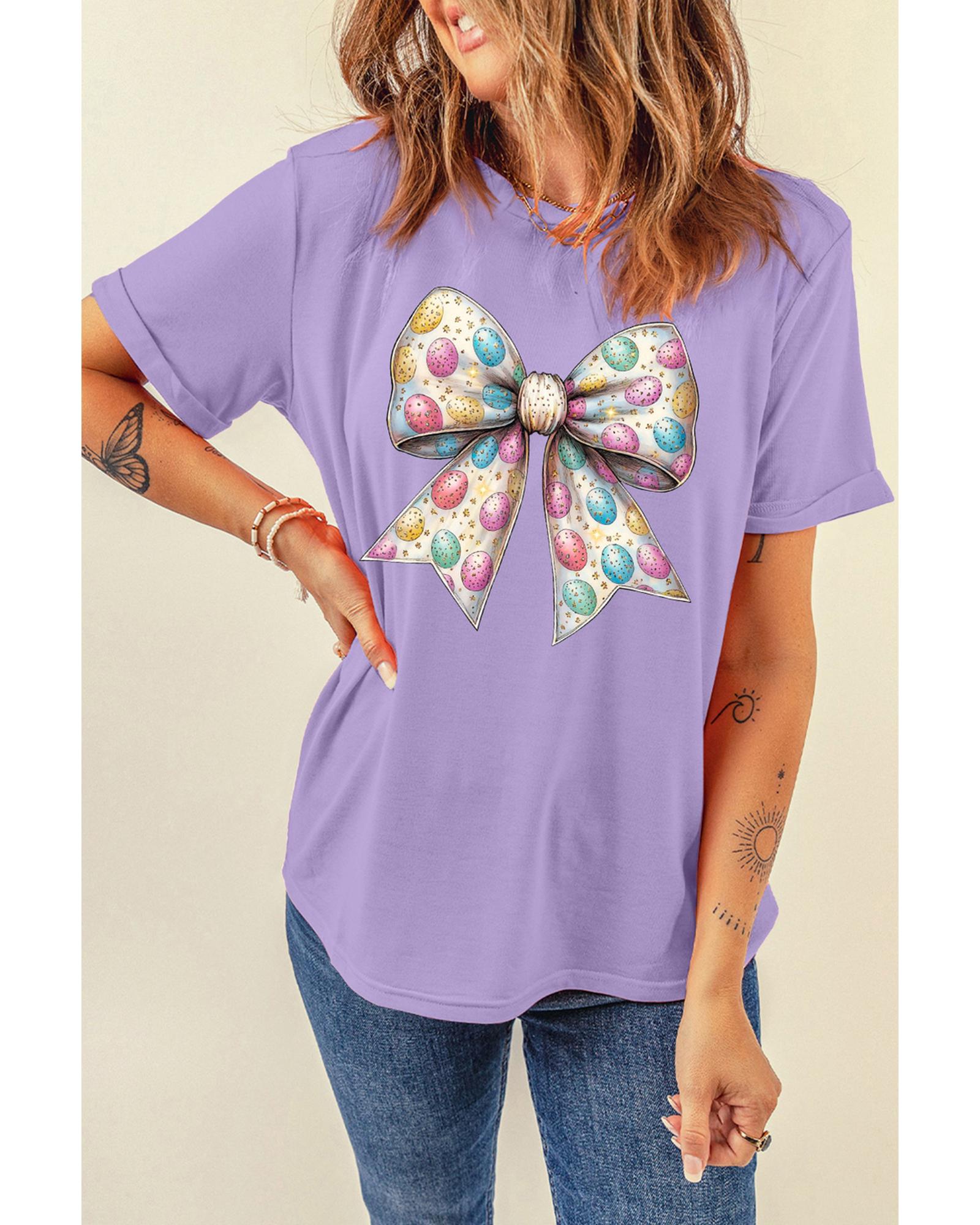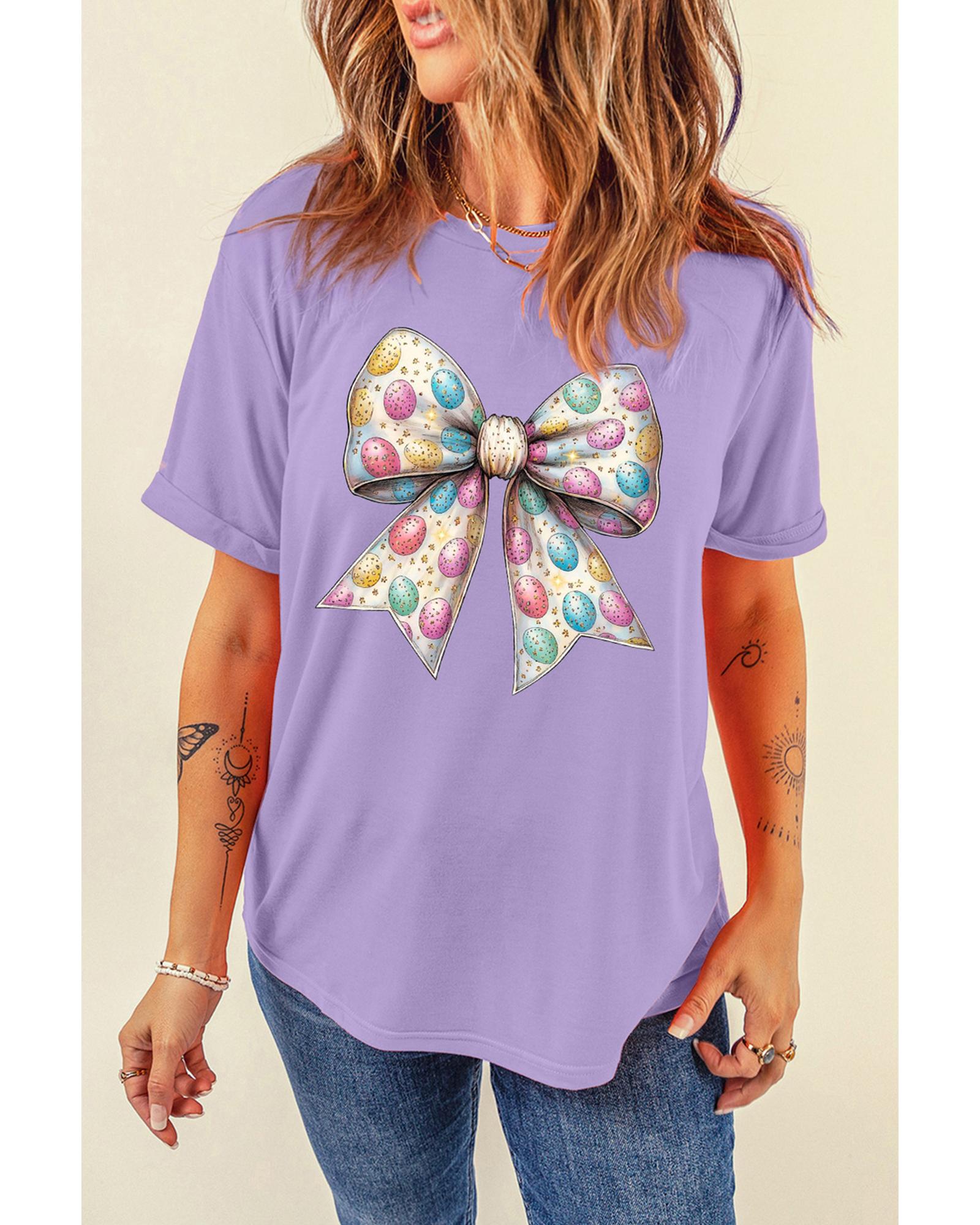 Wisteria Celebrative Easter Eggs Bow Print Casual T Shirt – XL