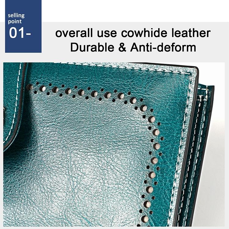 This women’s anti-magnetic RFID wallet combines compactness with security, making it an ideal accessory for everyday use. Crafted from soft and durable leather, it offers multiple card slots for convenient storage. The wallet features anti-magnetic RFID technology to protect your personal information and is designed to be lightweight and non-deformable for ease of carrying.