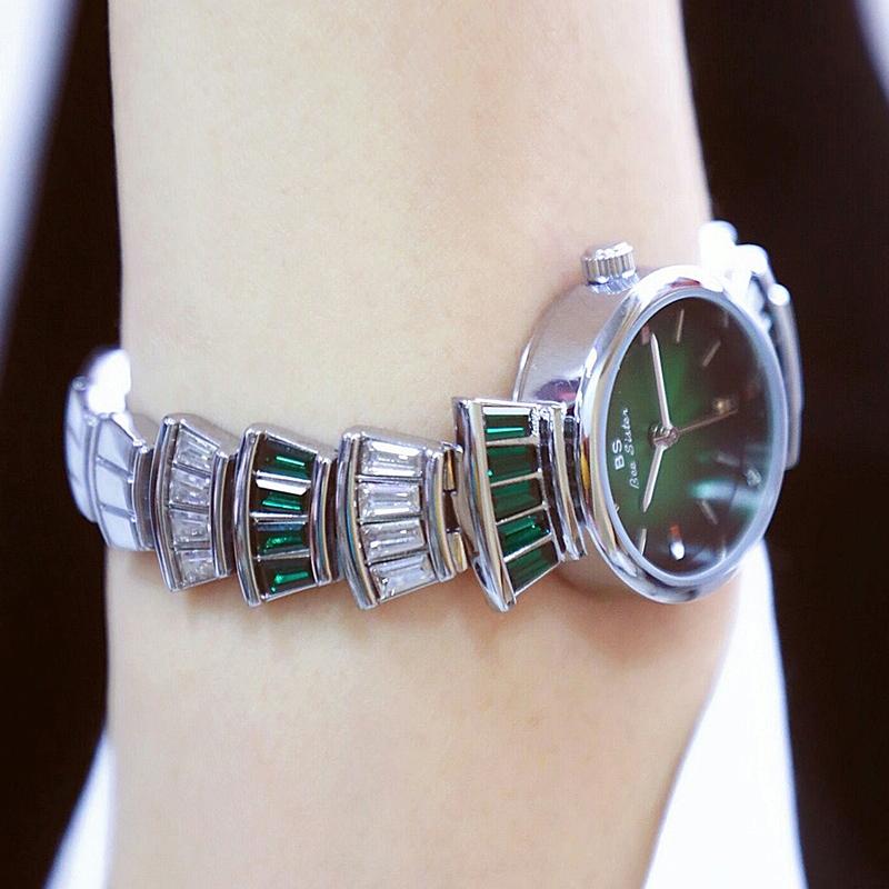 Women Diamond Symphony Wrist Watch with Inlaid Diamonds – Silver Green