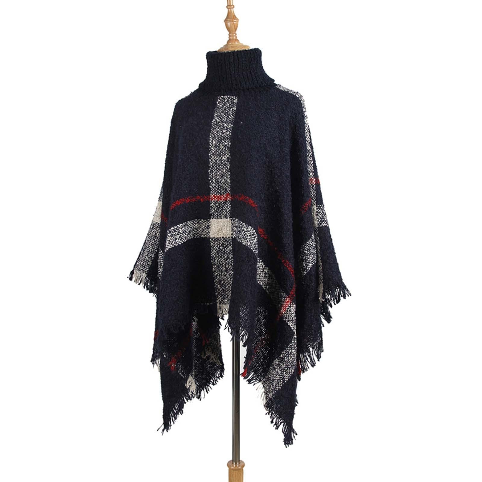 - 1 x Women Mid-Length Turtleneck Sweater Fringed Cloak Shawl – Size Free Size