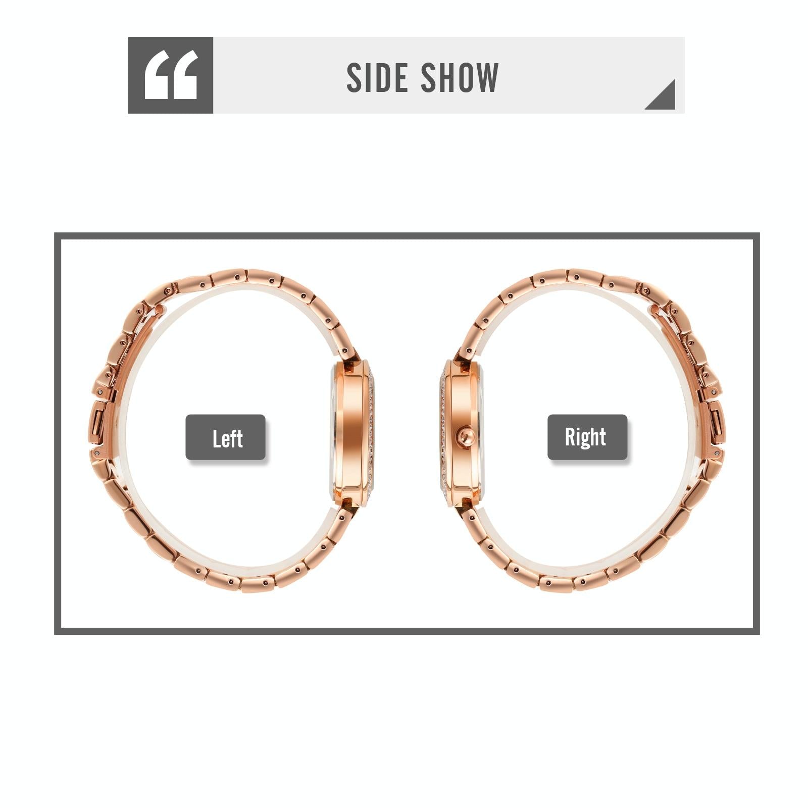 The package includes one women??s quartz watch with diamond Roman numerals and a round dial.