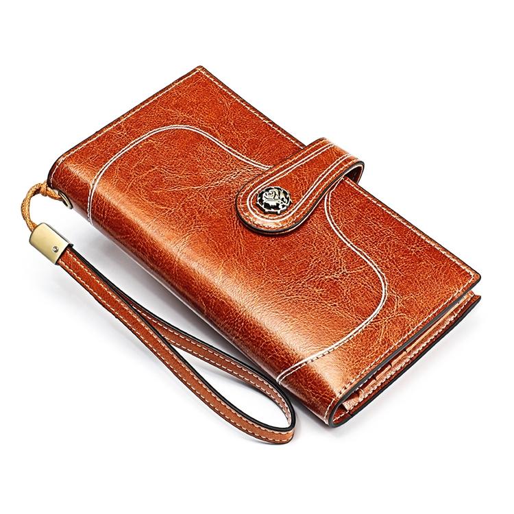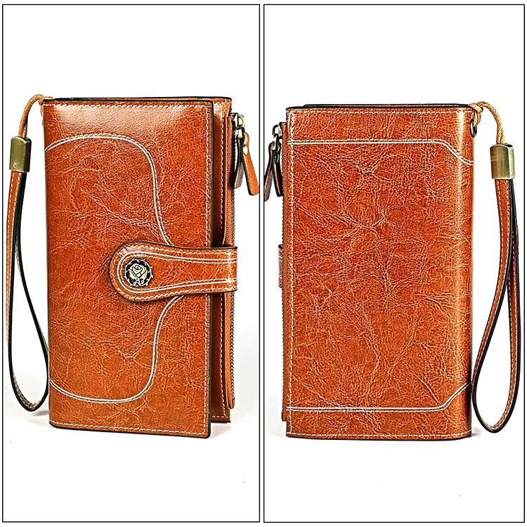 Women Vintage Rfid Oil Wax Wallet – Classic Design – Brown