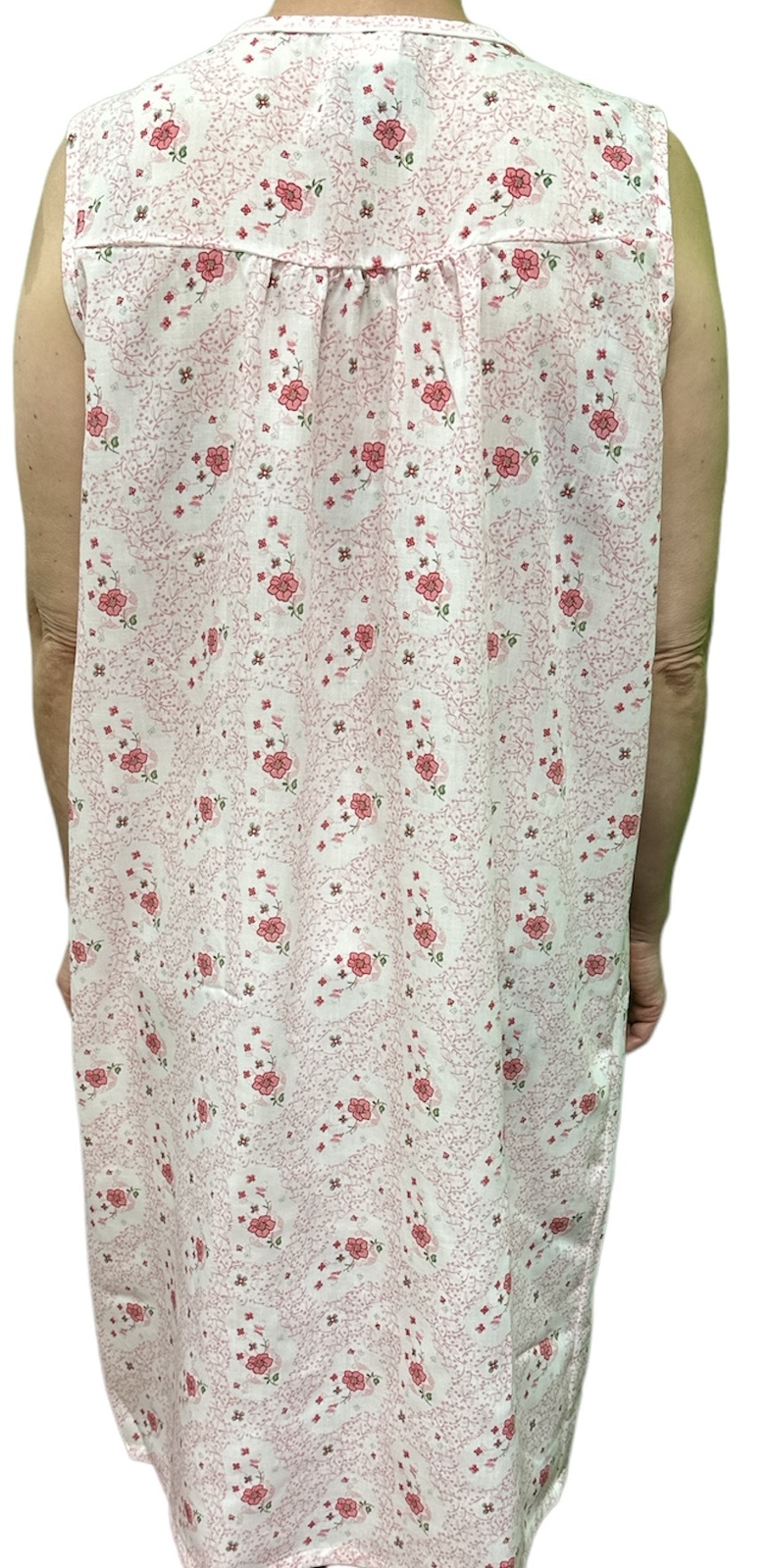 This sleeveless nightgown is made from 100% cotton, offering a comfortable and breathable option for a restful night’s sleep. Its soft fabric and simple design make it ideal for warmer weather, combining comfort and style effortlessly.