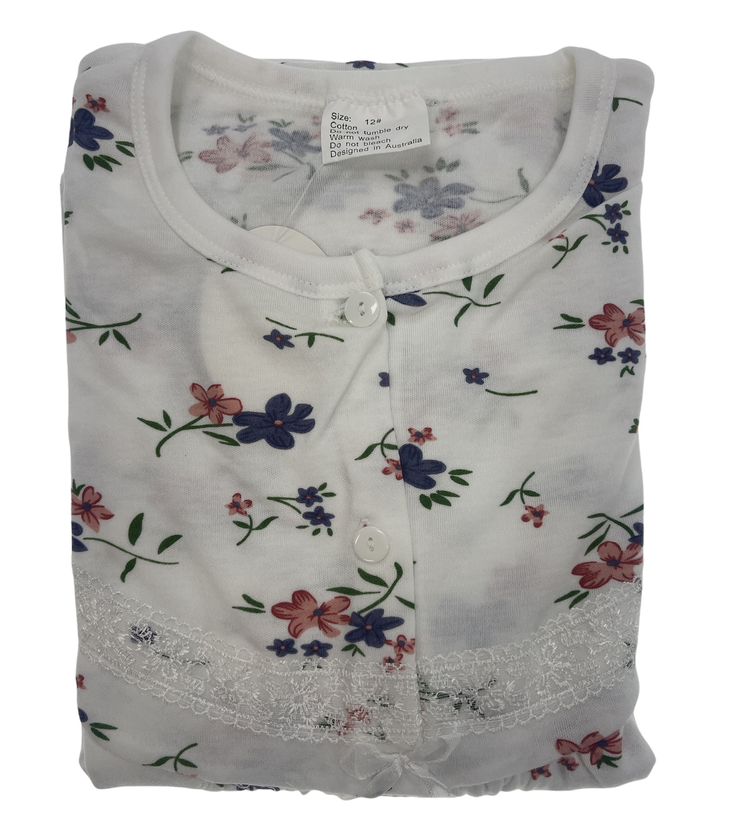 This women’s nightwear set offers a comfortable and stylish option for sleepwear. Made from soft cotton, it provides a breathable and airy feel, perfect for a restful night. The design features delicate lace details on the neckline, arm openings, and hem, adding a touch of elegance. Available in classic white and pink colors, this nightgown combines comfort with charming design.