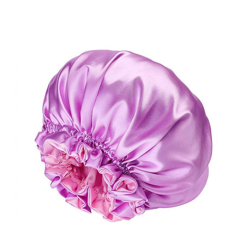 Womens Satin Sleep Cap Bonnet Elastic Wide Band Hair Sleeping Hat - Light Purple