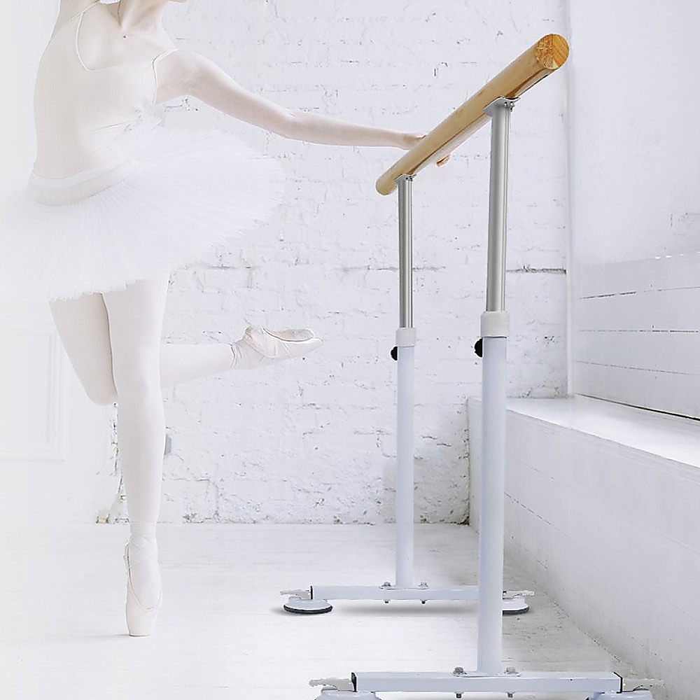 This portable wooden ballet bar is designed for dancers of all levels, offering a sturdy and adjustable platform for stretching, balance, and flexibility training. Its lightweight and freestanding design make it easy to move and set up in various locations, making it ideal for home studios or personal practice spaces.