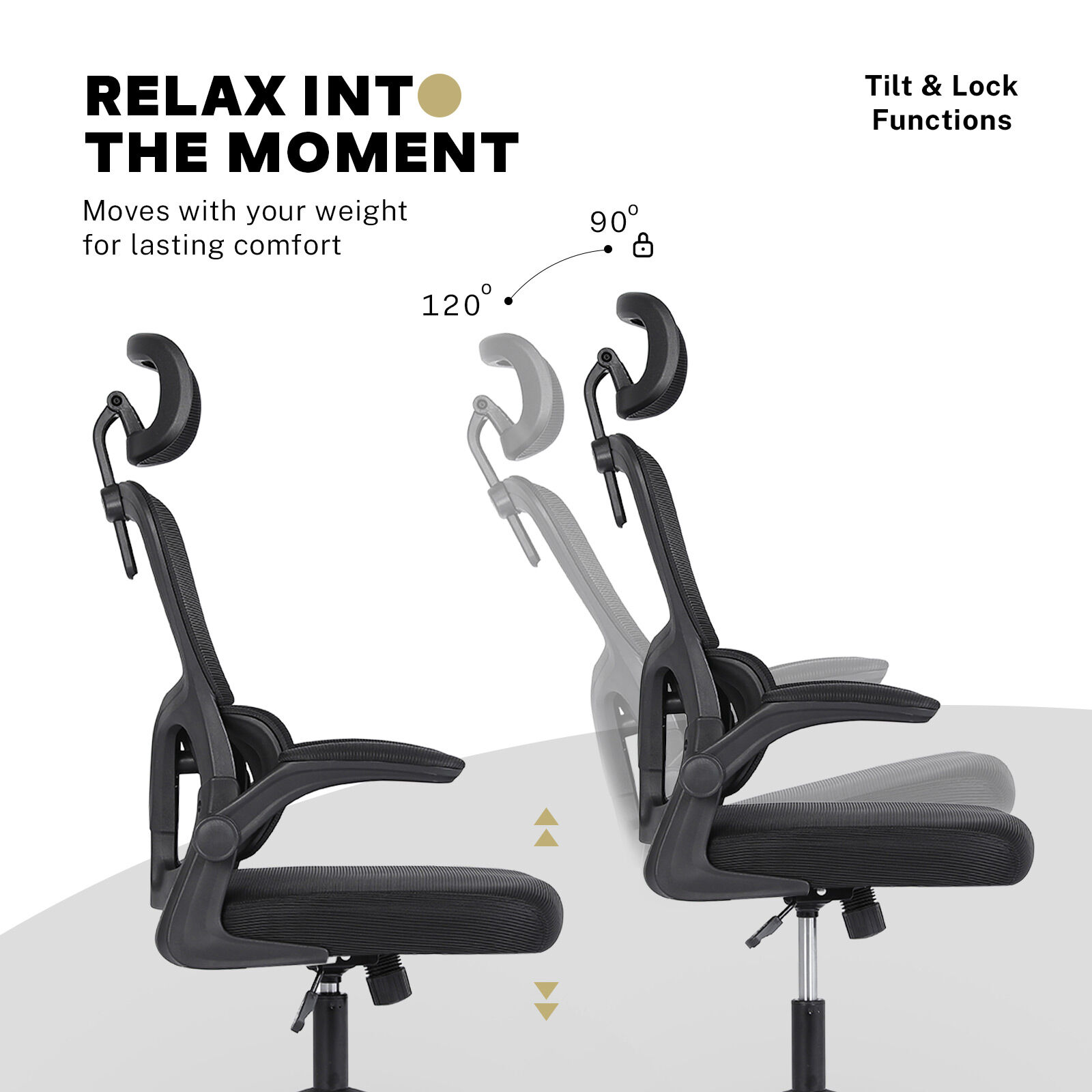 Work Office Chair – Lumber Support, Flip-up Armrest, Adjustable Headrest SITIO – Black