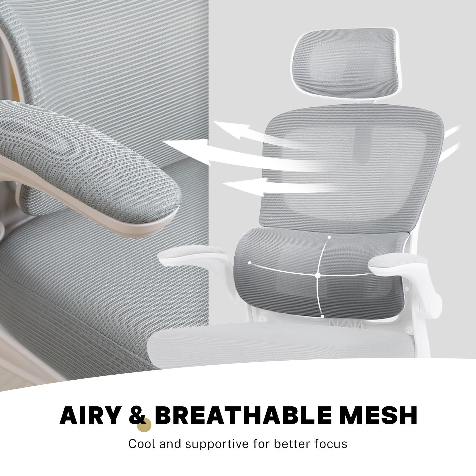 Work Office Chair – Lumber Support, Flip-up Armrest, Adjustable Headrest SITIO – GREY