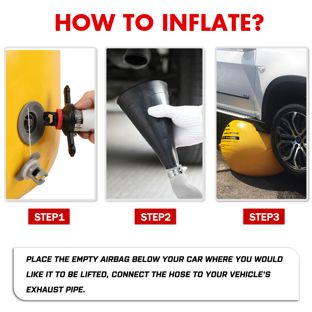 - Inflates using a tailpipe exhaust with a 6-meter (20-foot) exhaust hose