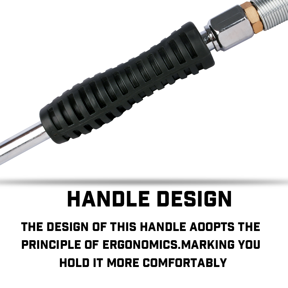 • Heavy-duty rubber hose reinforced with flexible spring steel for protection
