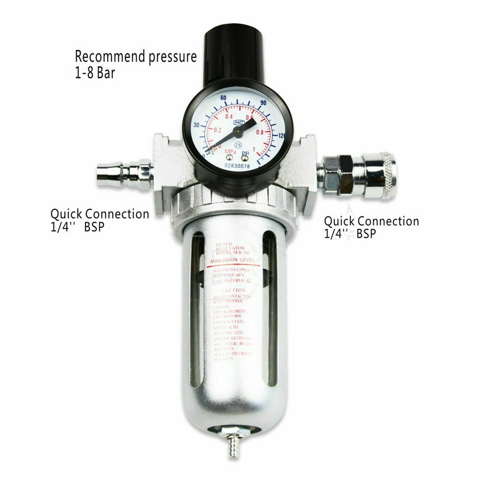 This moisture water trap filter regulator separator is designed to effectively remove water and particulates from compressed air systems, ensuring clean and dry air for various applications. It features easy regulation and reliable filtration, making it suitable for spray painting and other pneumatic tasks.