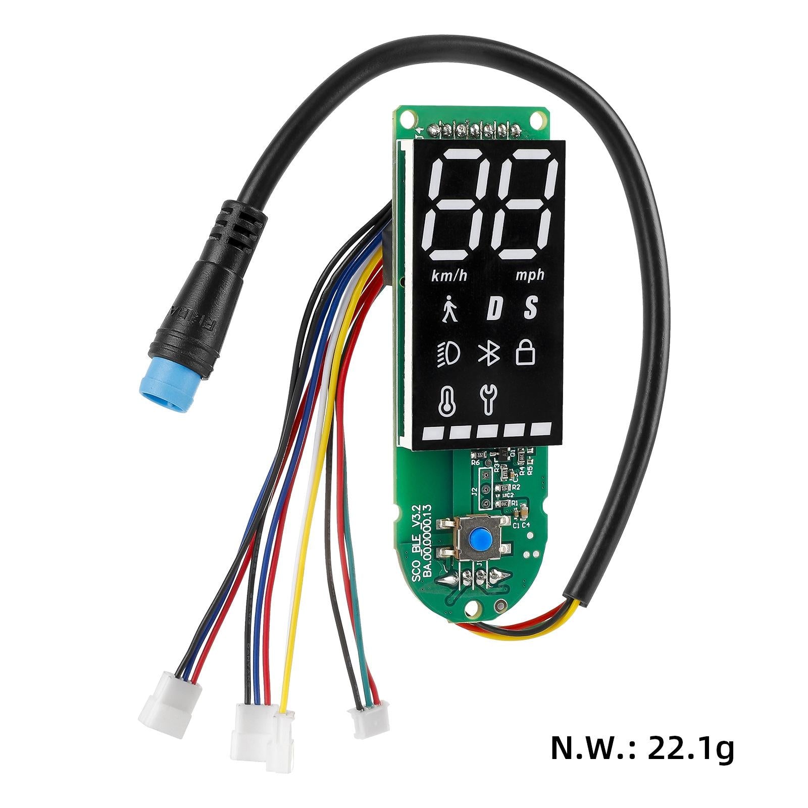 This product is a Bluetooth brake board set designed for electric scooters, providing a reliable replacement for damaged or malfunctioning dashboards and controls. It features easy plug-and-play installation and is made from durable, sun-proof, and anti-aging plastic and metal materials. Compatible with various scooter models, it helps eliminate safety hazards such as short circuits, power failures, and startup issues.