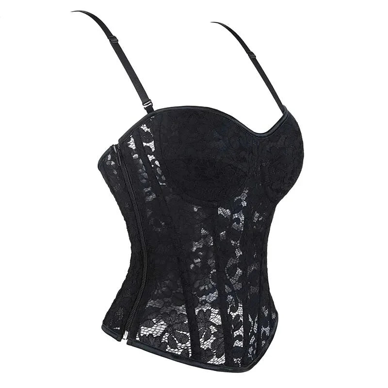 Xs-Xxl Spaghetti Strap Lace Mesh Lingerie With Padded Cups Plus Size Bustier – Xl