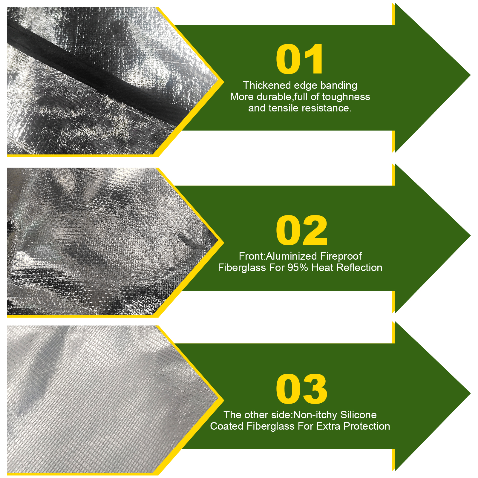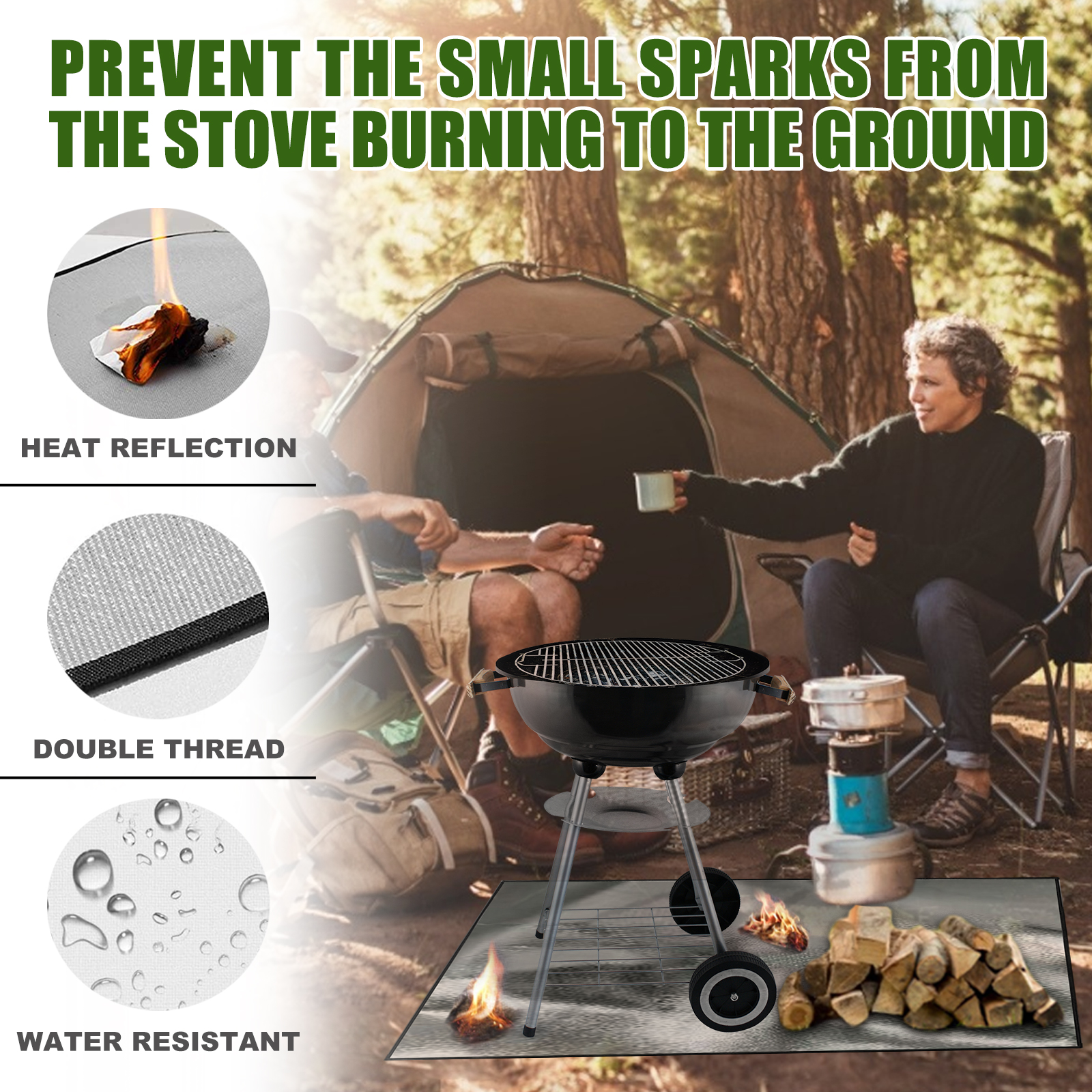 This fireproof mat is designed for outdoor use, providing protection for decks, patios, lawns, or campsites from embers and heat during barbecues. Made with aluminized fire-retardant glass fiber and thermal insulation cotton, it offers excellent heat resistance, toughness, and tensile strength. The silicone-coated glass fiber adds extra durability and makes cleaning easy, whether removing oil, mud, or smoke stains.