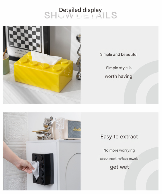 Yellow 2 Pcs Creative Building Block Tissue Box Holder – Wall-Mounted & Desktop Dispenser for Bathroom, Kids Room & Office Decor