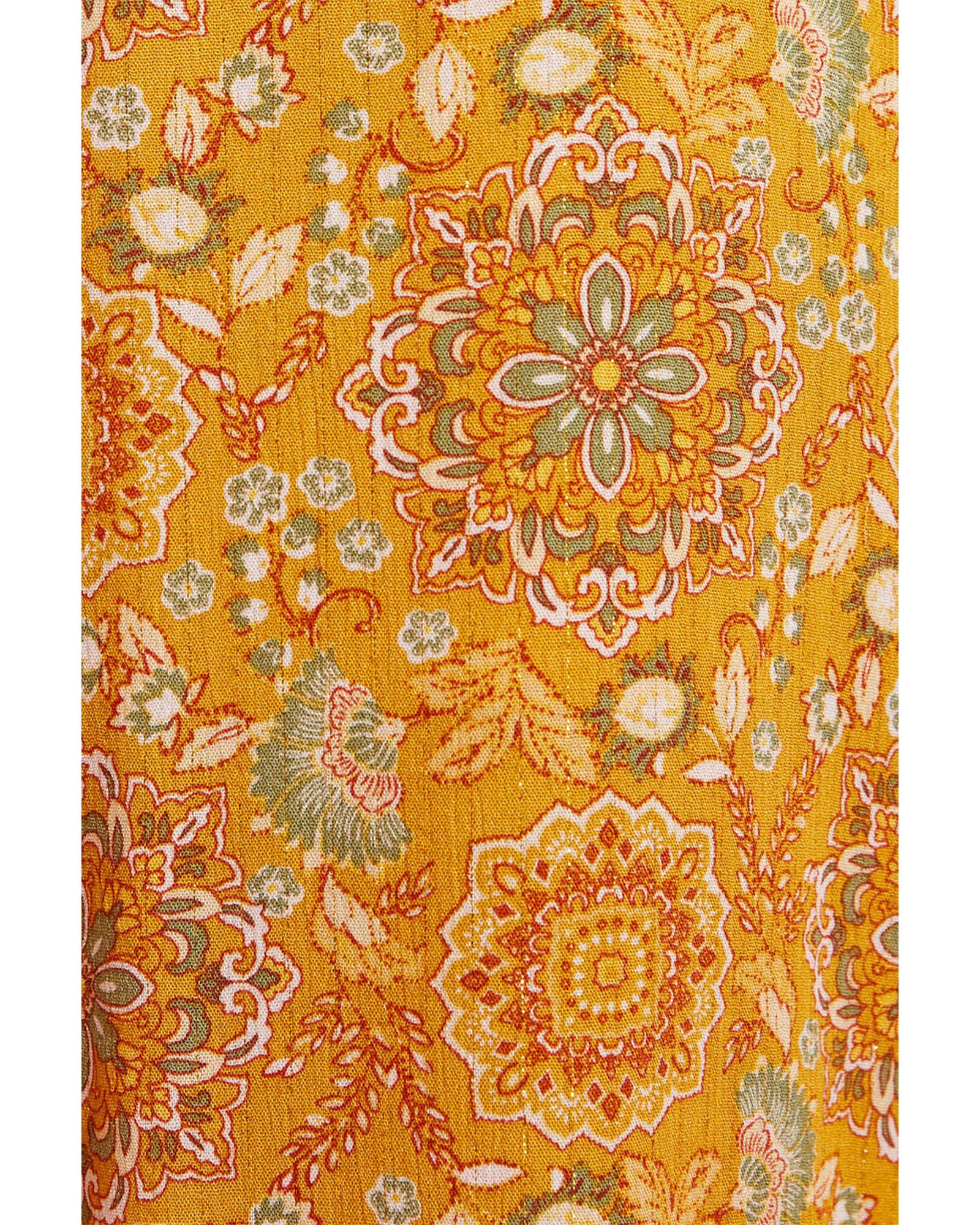 These wide-leg pants feature a vibrant bohemian floral print and a comfortable pocketed design, making them suitable for both casual and dressier occasions. The high waist adds a touch of retro elegance, while the flowy silhouette provides a relaxed fit. Crafted from lightweight viscose, they offer comfort and style in one piece.