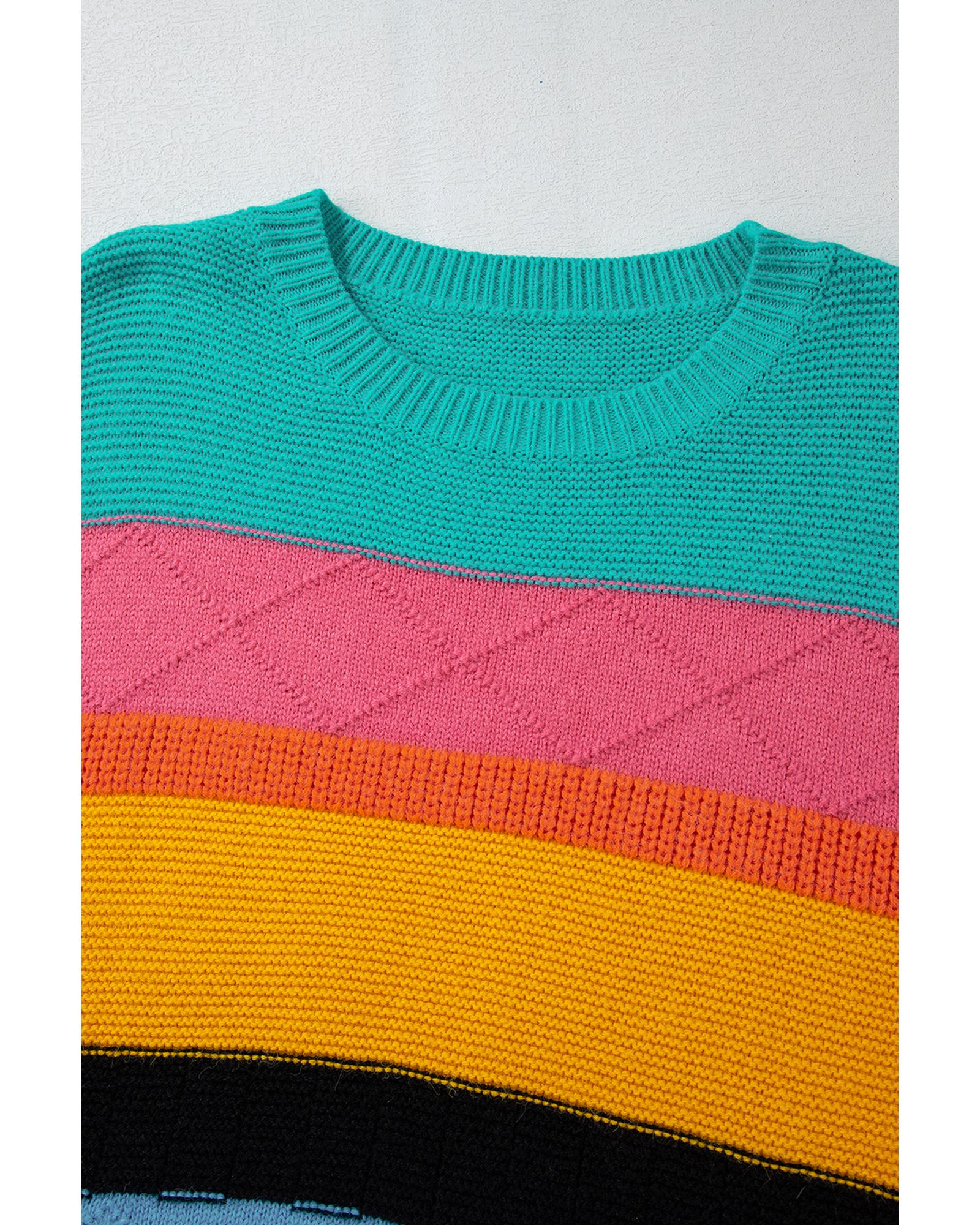 Yellow Colorblock Mixed Textured Drop Shoulder Sweater – XL