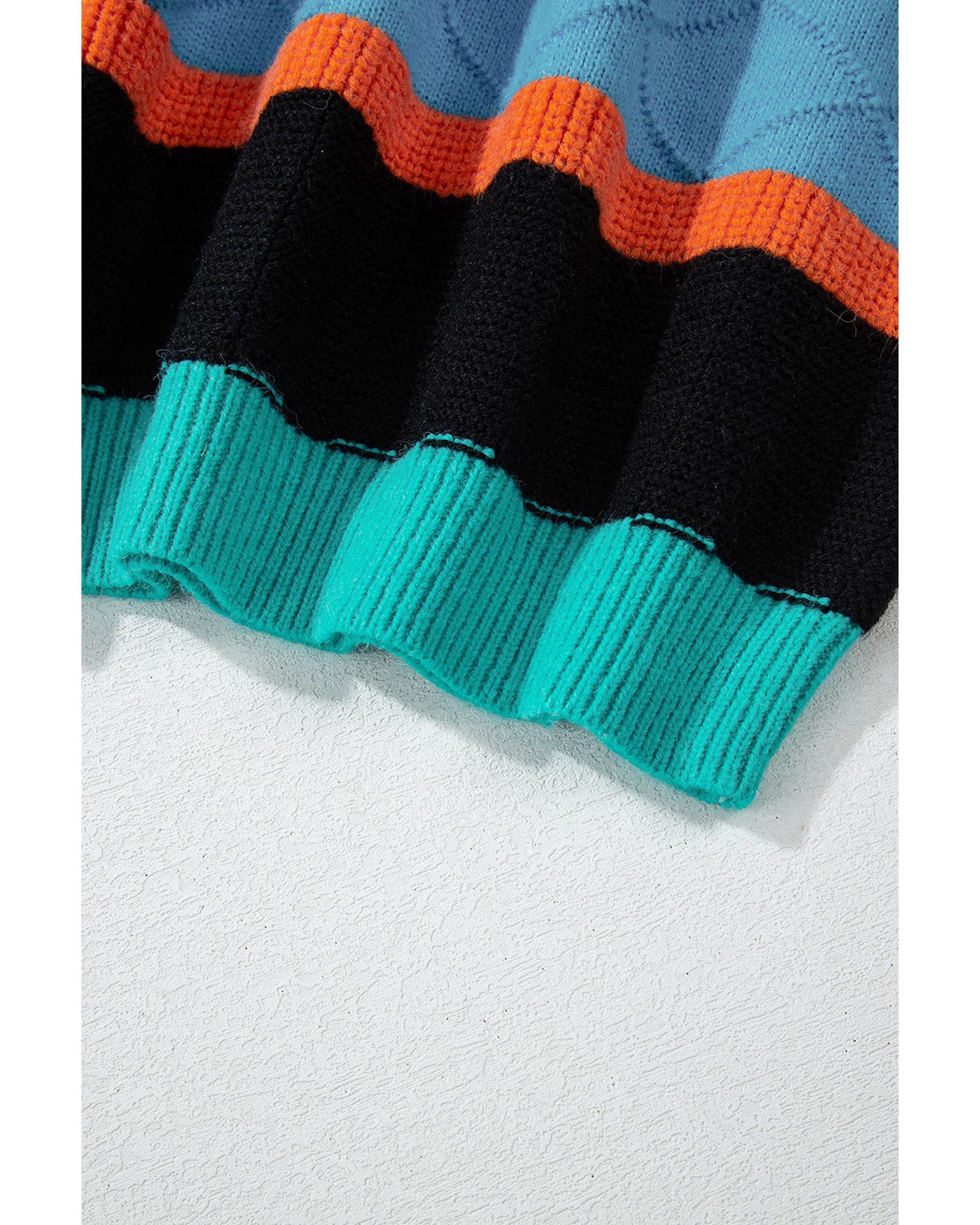 This yellow colorblock sweater features a mixed textured design with a drop shoulder style, offering a casual and fashionable look. Made from soft, warm material, it is ideal for staying cozy during colder weather and perfect for layering in winter. Its bold color block pattern and textured details make it a unique addition to any wardrobe.