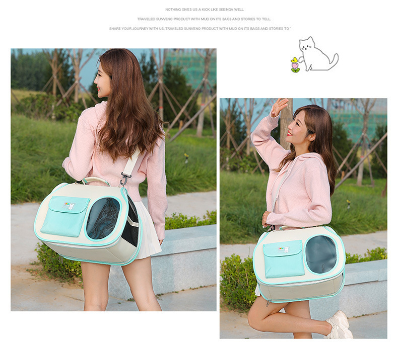 This pet carrier backpack is designed for convenient travel with small pets. It features breathable material and a transparent window to keep your pet comfortable and allow them to enjoy the view. The backpack is suitable for various outdoor activities and complies with airline regulations for pet travel.