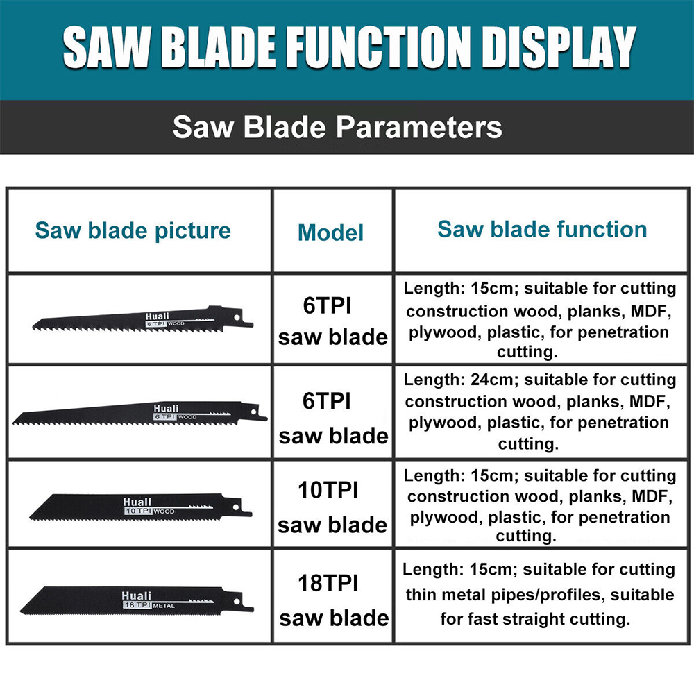 This cordless electric reciprocating saw cutter is designed for versatile cutting tasks with high power and efficiency. It features a variable speed control, an electric brake, and a tool-less blade change system. The ergonomic handle and trigger switch with lock-off lever provide comfortable and safe operation. The newly designed crank mechanism enhances performance, making it suitable for various materials when used with compatible batteries.