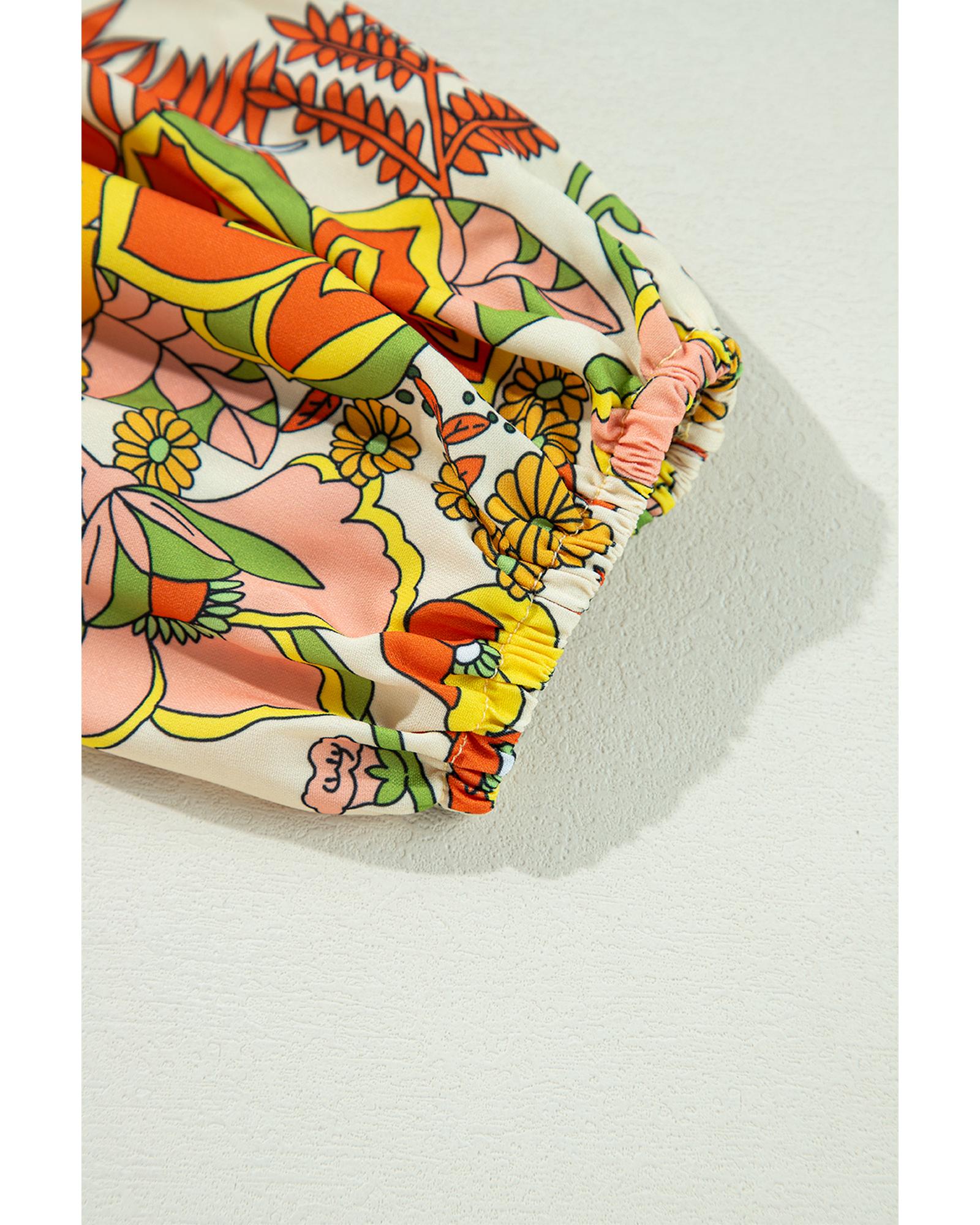 This mini dress features a vibrant floral print with a flattering V neckline and puff sleeves, creating a fresh and feminine look. Designed with a trendy fitted silhouette, it offers a comfortable and effortless style suitable for various occasions.