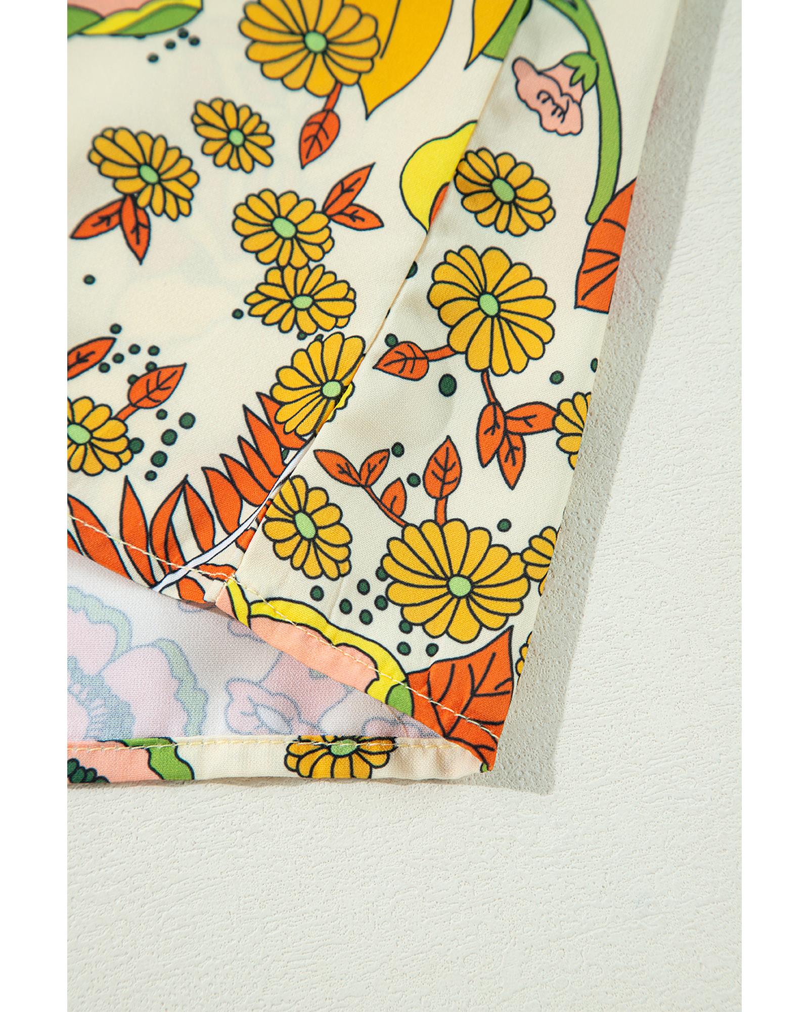 Yellow Cream Floral Print V Neck Puff Sleeve Mini Dress – XL