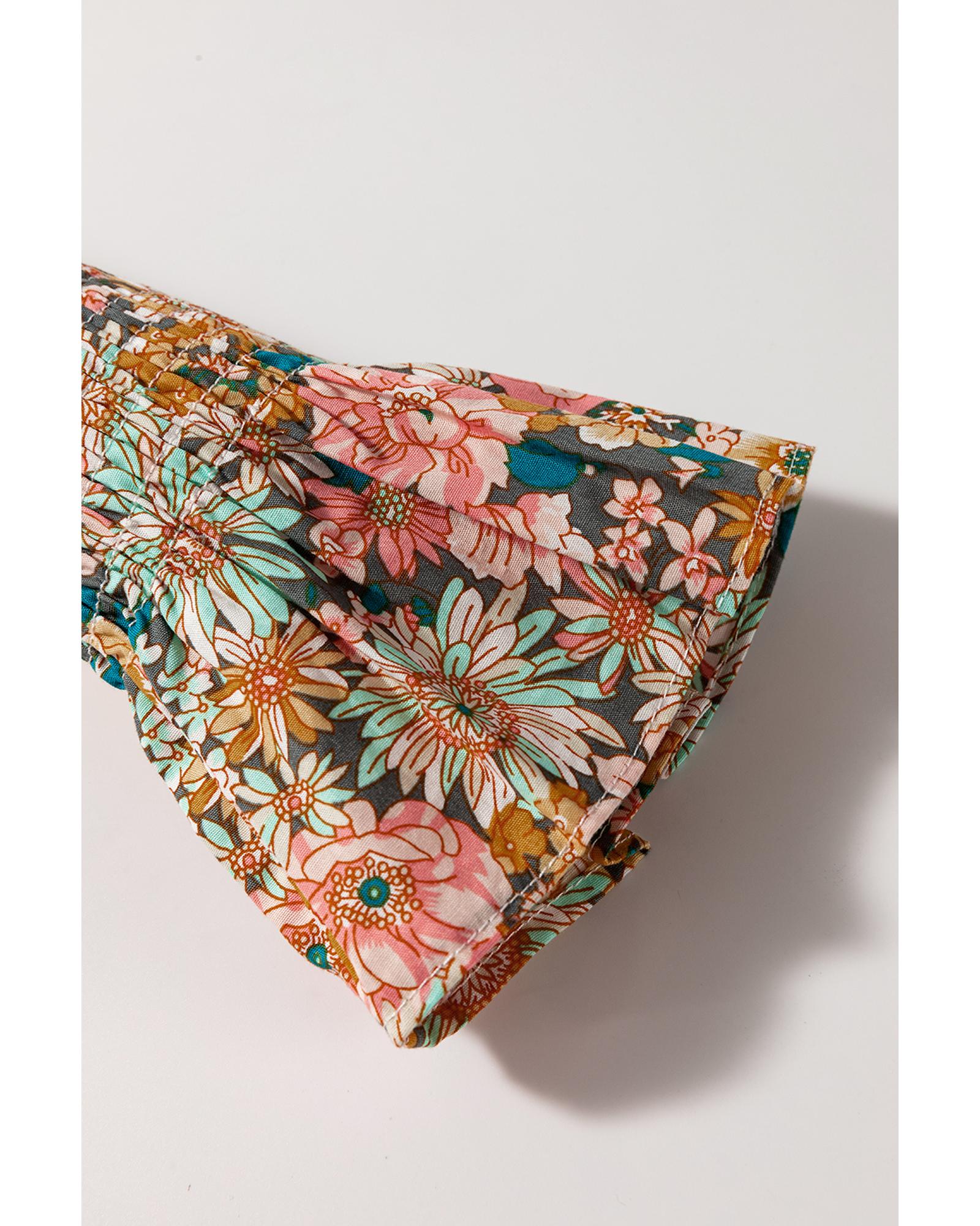 • 1 x Yellow Floral Print Smocked Bubble Sleeve Ruffled Crop Top