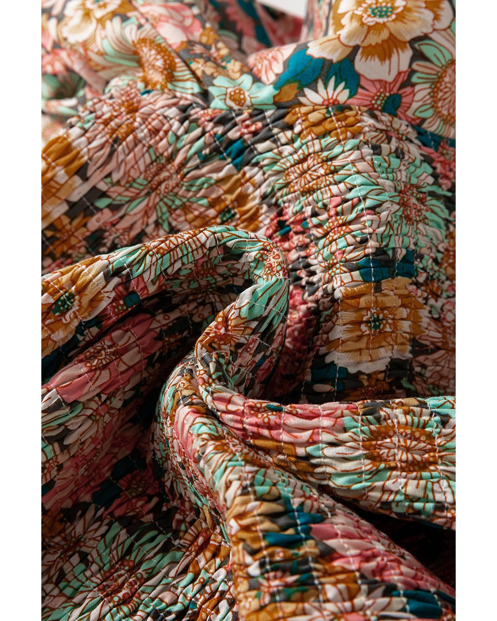 Yellow Floral Print Smocked Bubble Sleeve Ruffled Crop Top – XL