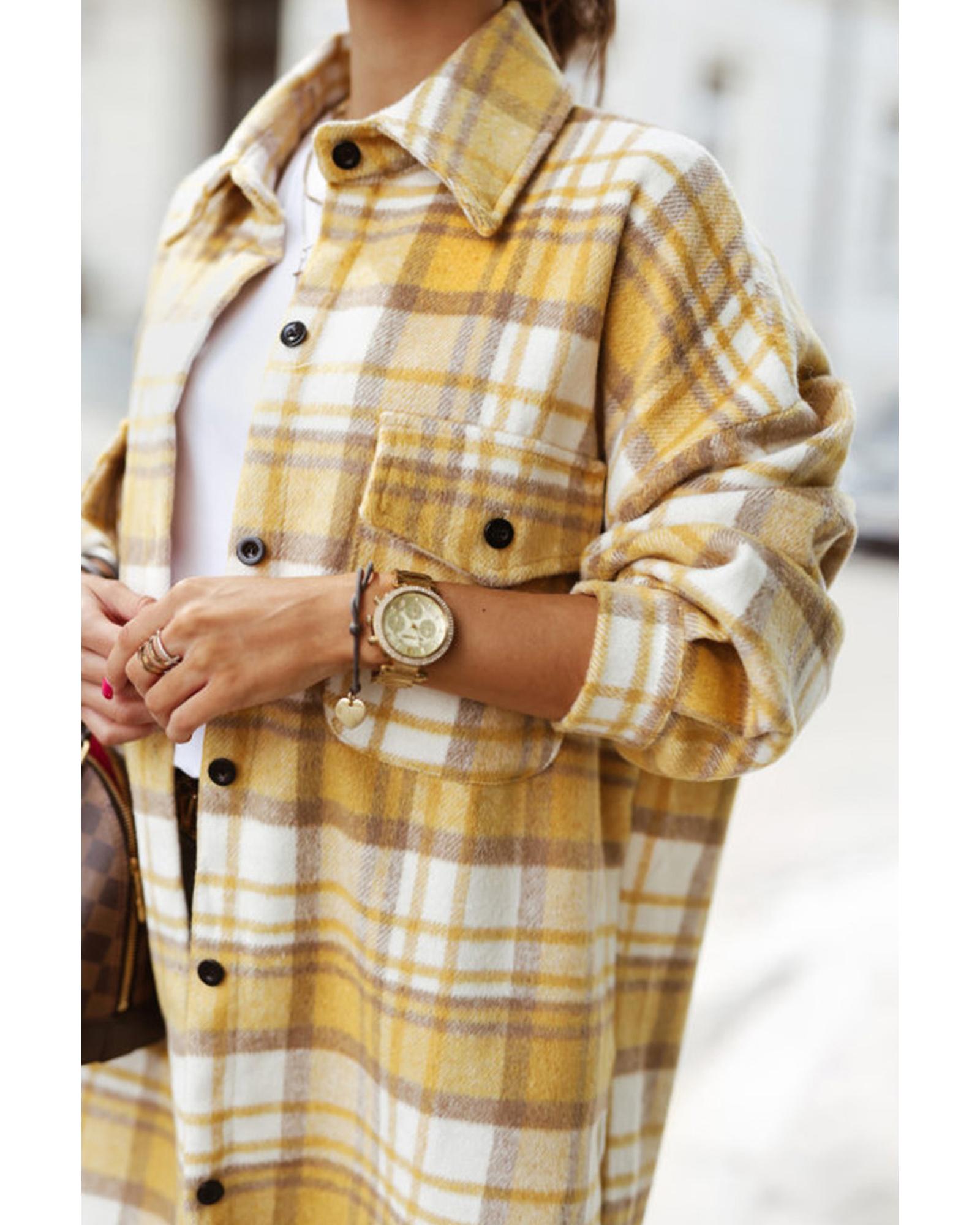 Yellow Plaid Flap Pocket Long Sleeve Shacket – M