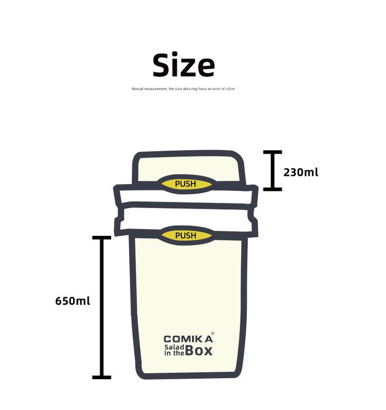This portable salad cup features a dual-compartment design with an ingredient section and a separate compartment for toppings or dressings. It includes an integrated utensil for convenience and is designed to be leak-resistant and easy to carry, making it ideal for healthy meals on the go. Made from durable, food-safe materials, it is suitable for various layered foods and snacks, promoting fresh and healthy eating anytime and anywhere.