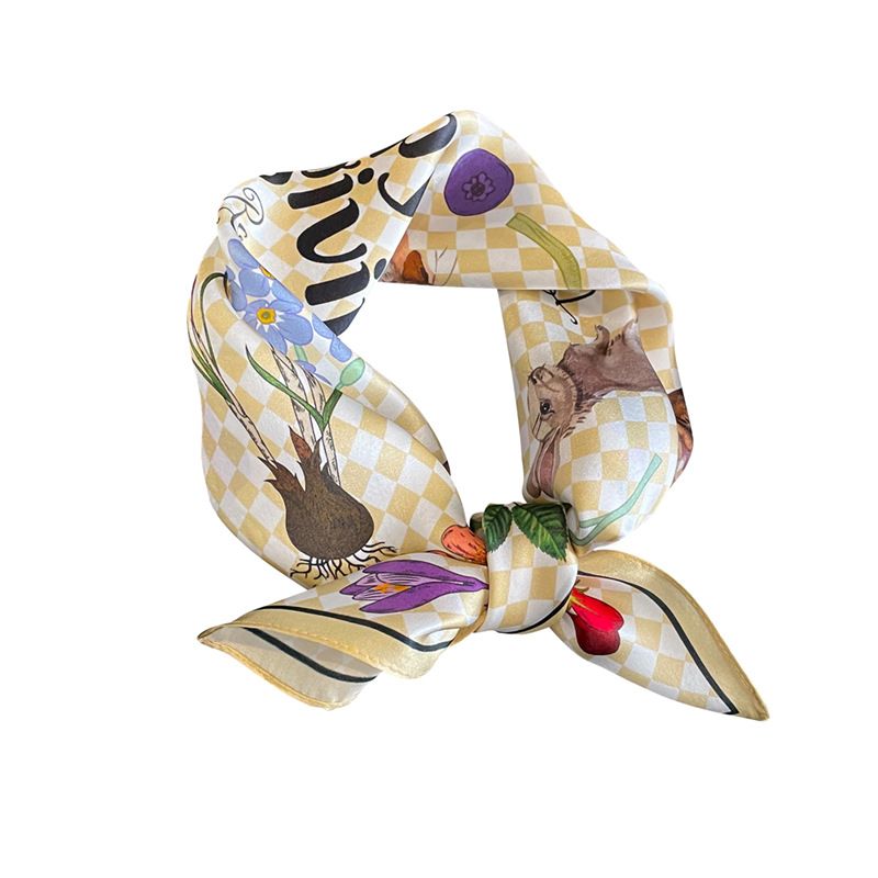 This elegant square silk scarf is crafted from 100% mulberry silk, offering a luxurious and soft feel. Featuring a delicate floral print, it adds a sophisticated touch to any outfit. Its lightweight and breathable design makes it suitable for year-round wear, and it can be styled as a neck scarf, headscarf, or accessory for a bag.