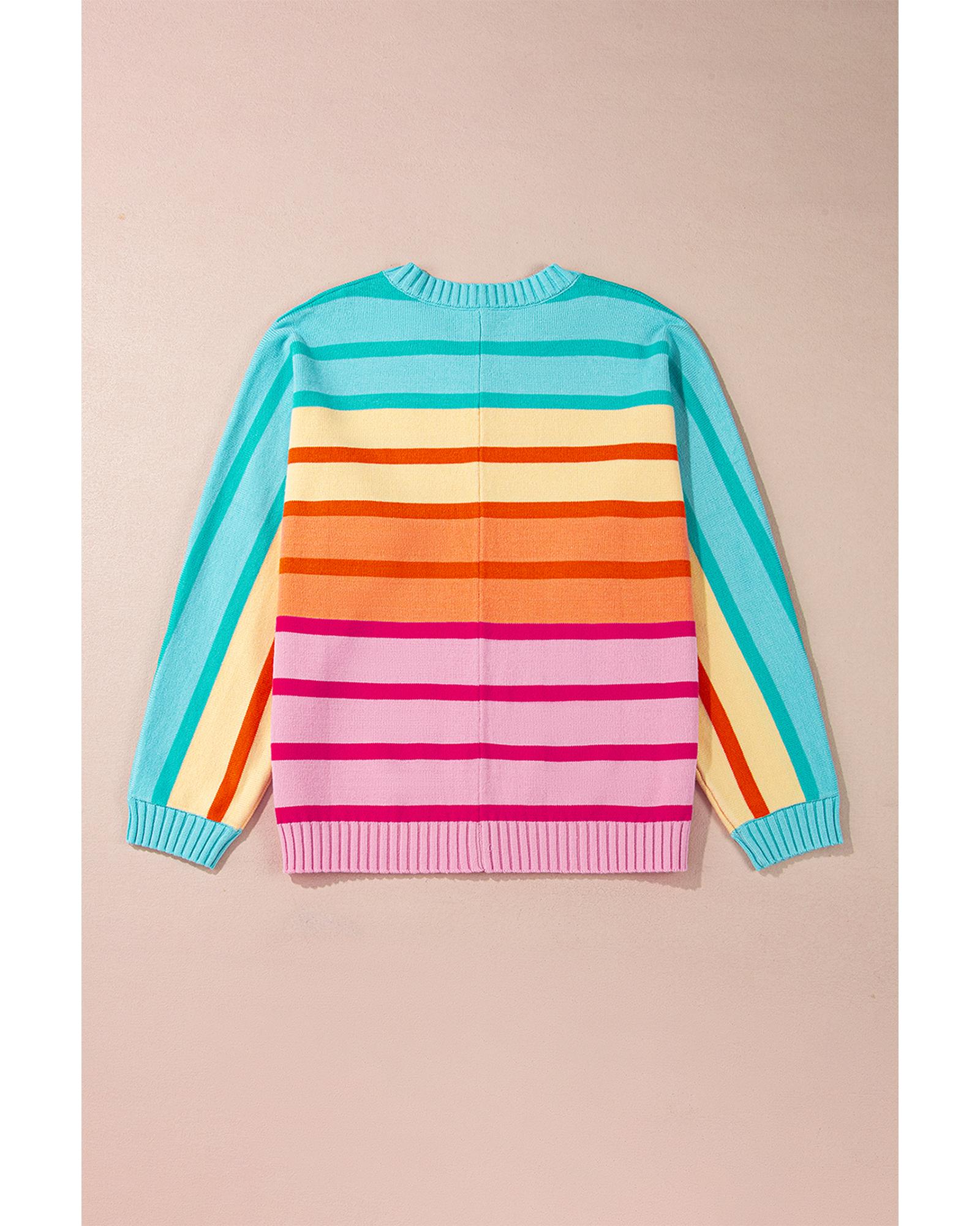 Yellow Stripe Gradient Striped Ribbed Edge Loose Sweater – L