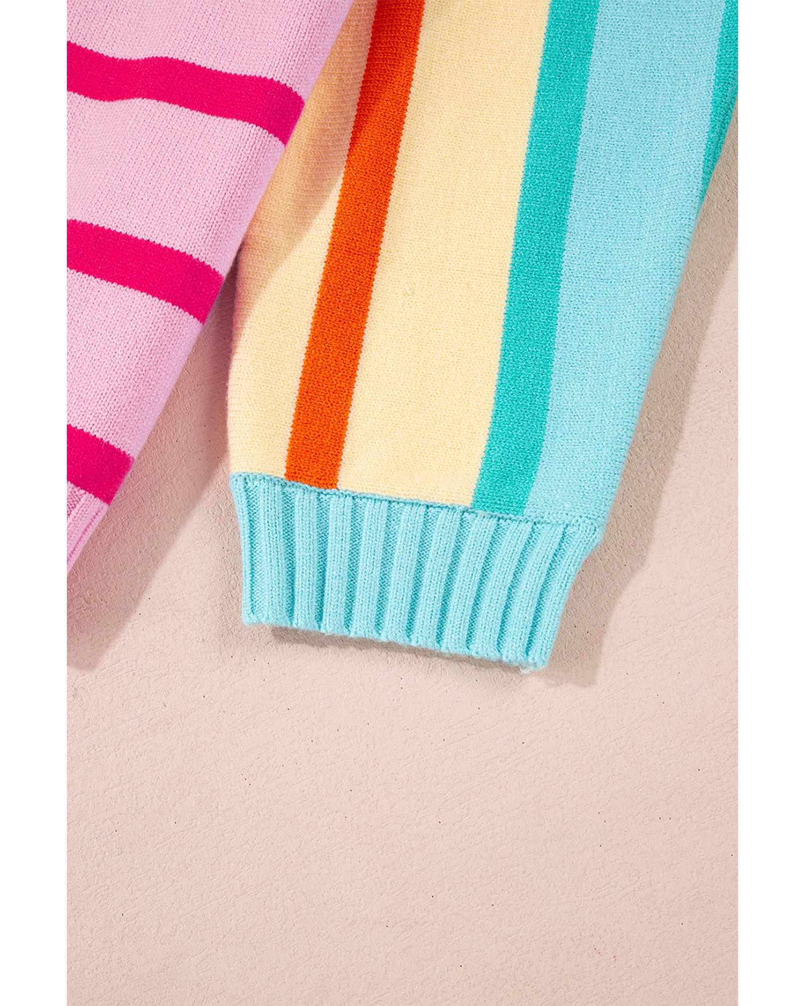 Yellow Stripe Gradient Striped Ribbed Edge Loose Sweater – M