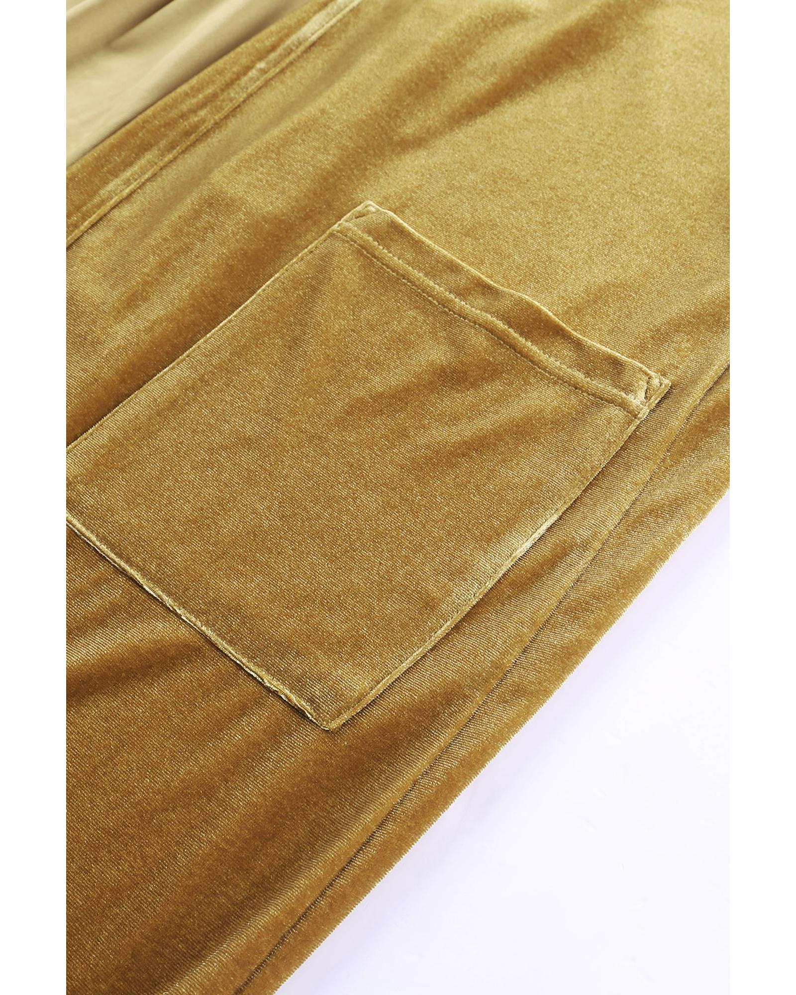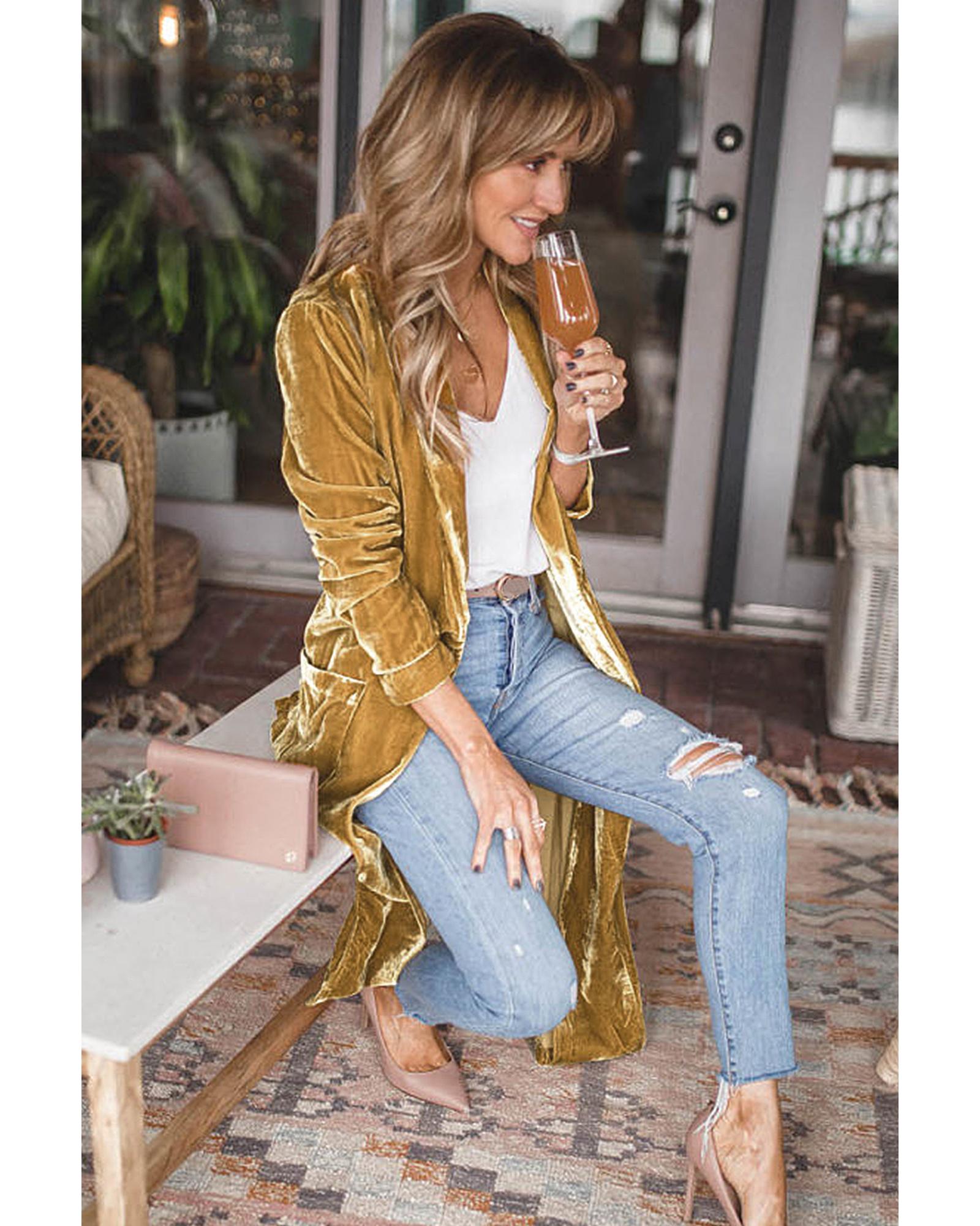 Yellow Velvet Open Front Pocketed Long Duster – 2XL