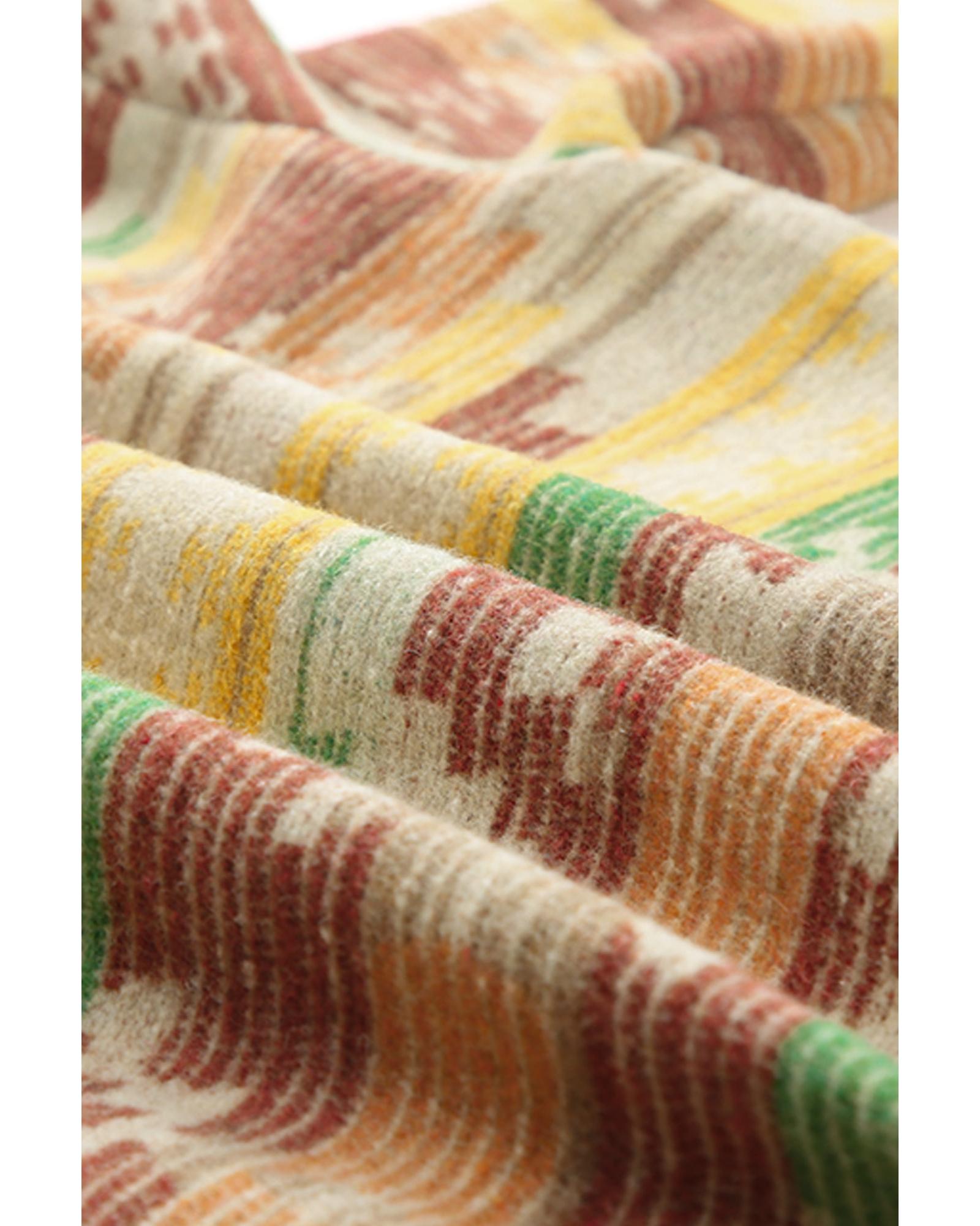 This yellow Western Aztec print shacket features a stylish button flap pocket design and a relaxed fit, making it a versatile addition to any wardrobe. Its trendy Aztec-inspired pattern adds a unique and fashionable touch, suitable for layering and various casual occasions.